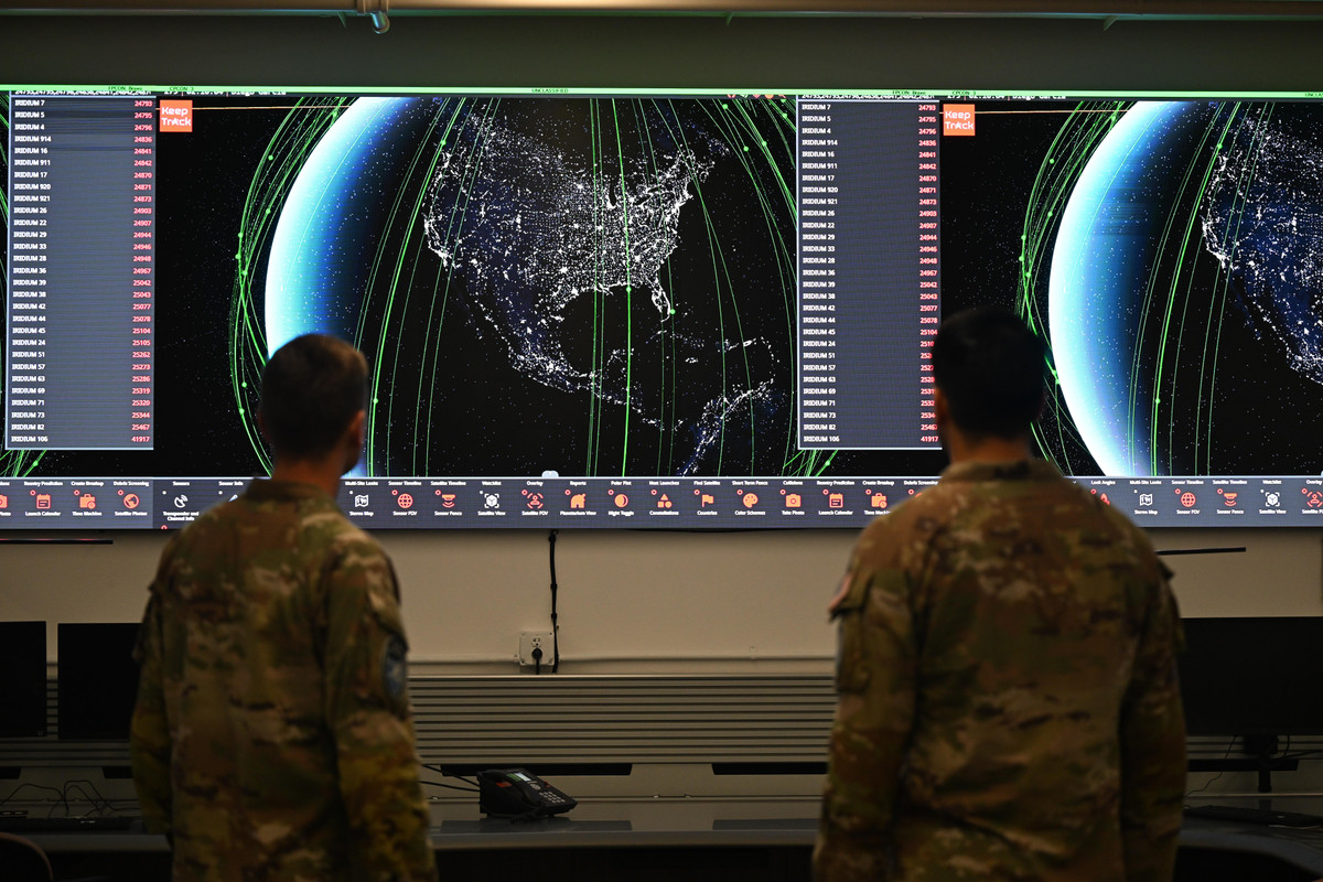 Các nhân viên quan sát dữ liệu quỹ đạo tại Căn cứ Lực lượng Không gian Vandenberg, California. Ảnh: David Dozoretz/Lực lượng Không gian Mỹ