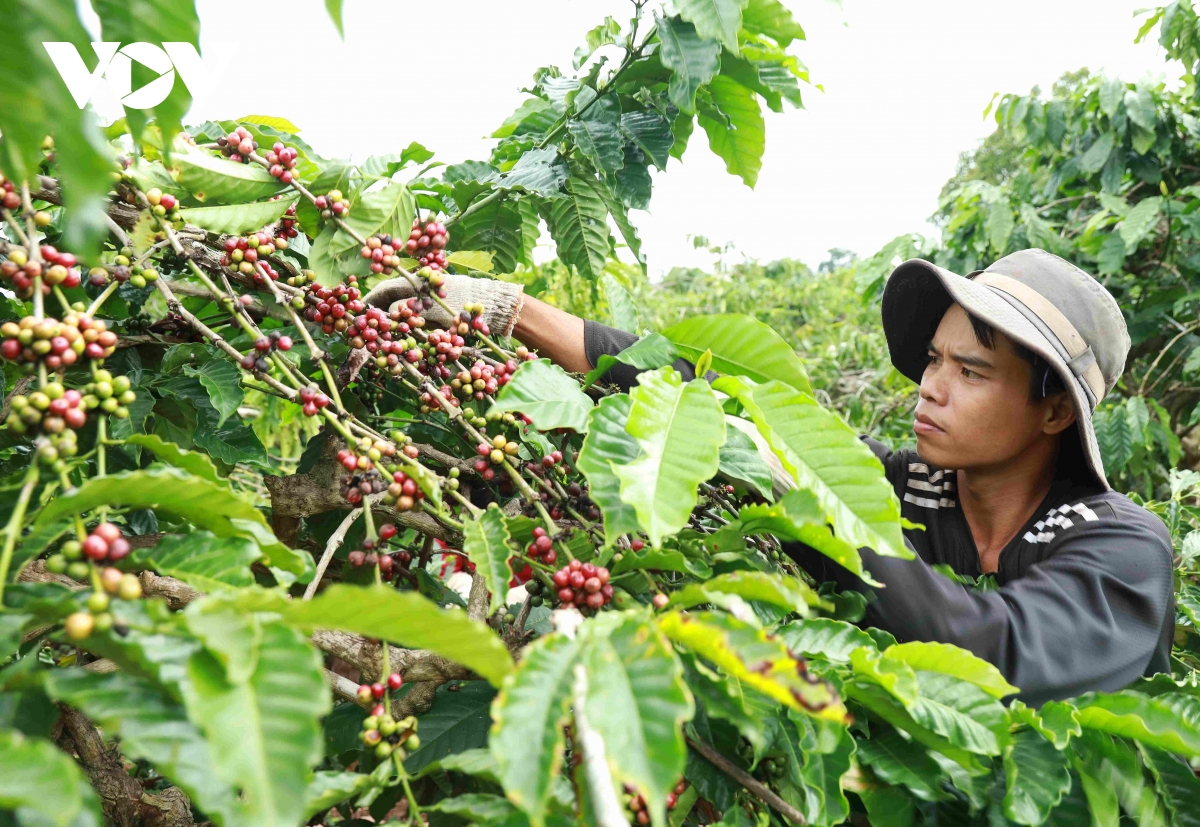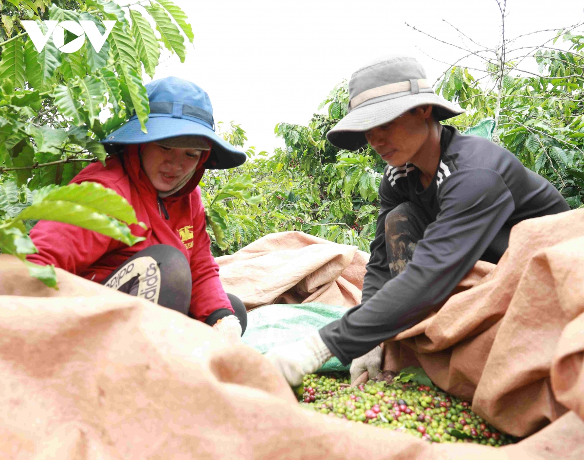 Người trồng cà phê ở Đắk Lắk đang bước vào thu hoạch rộ. Niên vụ năm nay dự báo năng suất tăng nhẹ so với năm trước.