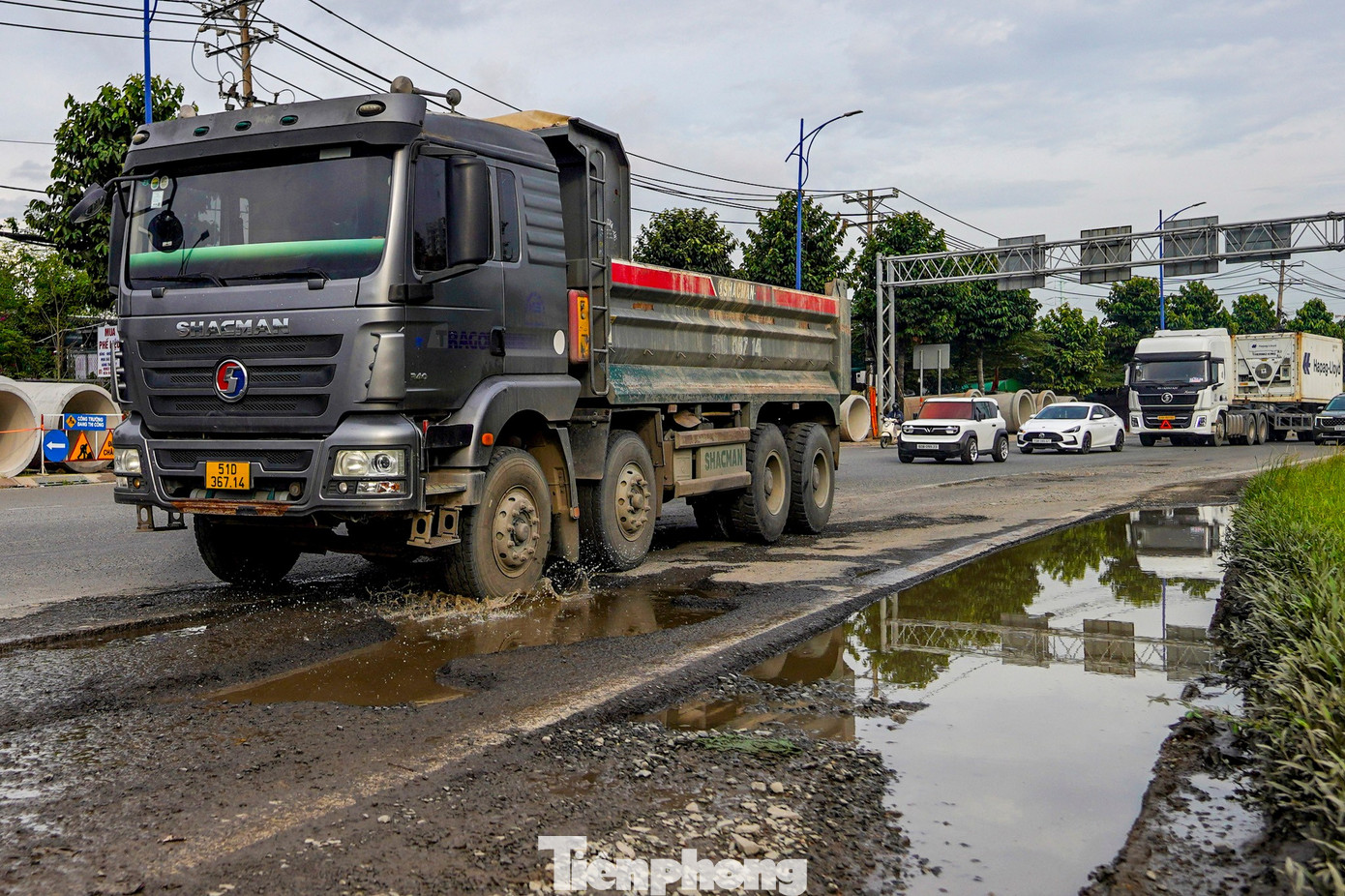 Ngay khúc ngoặt trái đoạn quay đầu về nút giao Mỹ Thủy, hướng vào cảng Cát Lái, xuất hiện một hố sâu cả gang tay, đất đá vương vãi, tiềm ẩn nguy hiểm cho người đi đường.
