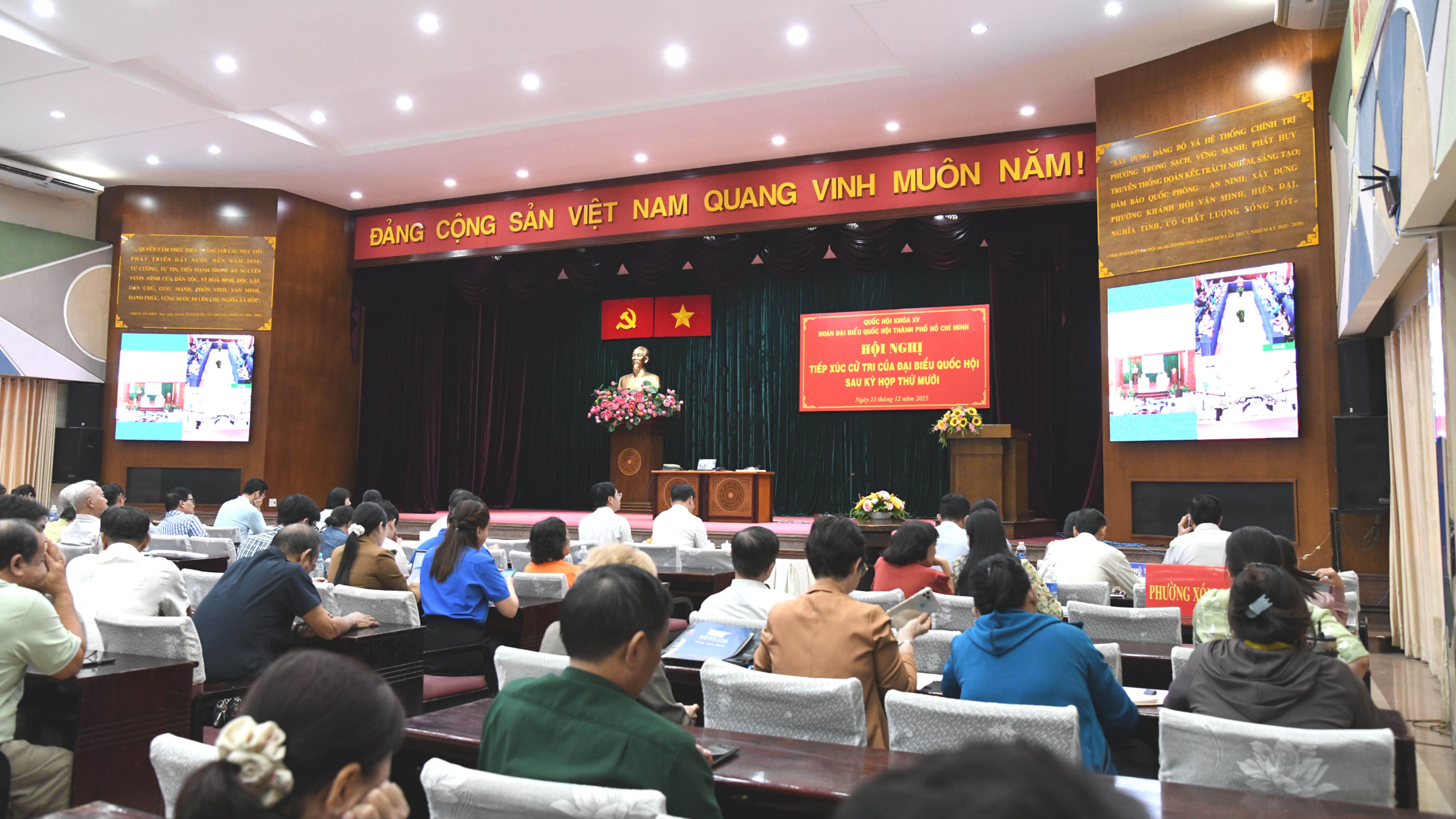 Phát biểu tại buổi tiếp xúc, ĐBQH Dương Văn Thăng giải đáp nhiều nội dung kiến nghị của cử tri và cho biết Tổ ĐBQH tiếp tục ghi nhận, tổng hợp đầy đủ các ý kiến cử tri; sẽ chuyển TPHCM và các bộ, ngành liên quan xem xét, giải quyết theo thẩm quyền.