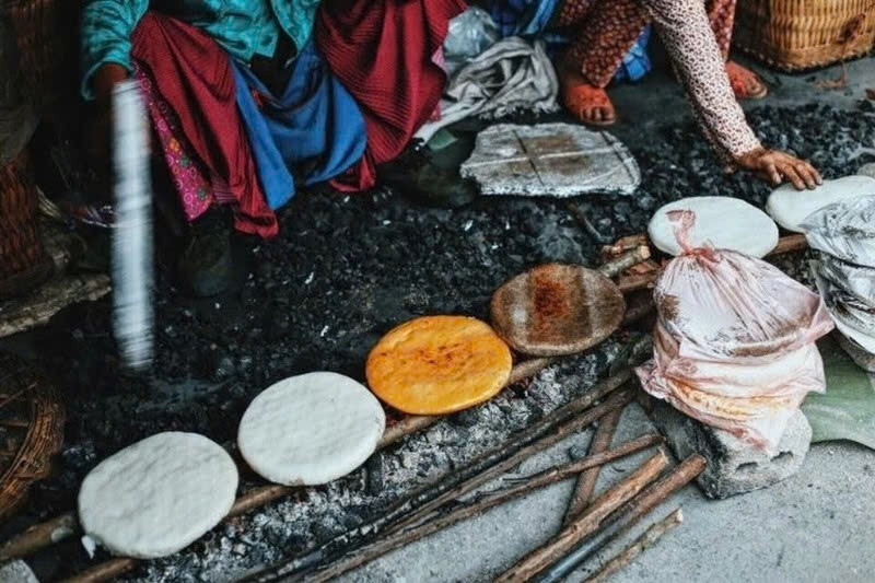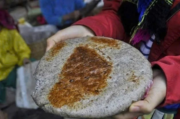 Những phiên chợ vùng cao từ Đồng Văn, Mèo Vạc đến Quản Bạ, hình ảnh quen thuộc là những người phụ nữ Mông váy áo sặc sỡ ngồi bên bếp lửa, đôi tay thoăn thoắt trở bánh. Trên mẹt tre là những chiếc bánh nhiều màu: vàng của bánh ngô, trắng của ngô nếp, và màu tím phớt thanh nhã của bánh tam giác mạch – sắc tím được tạo hoàn toàn tự nhiên từ hạt hoa. Ảnh Internet