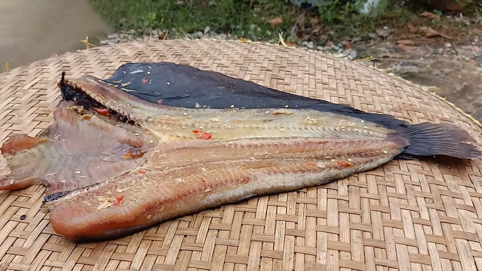 Sau đó, cá được mổ bỏ nội tạng, lấy phần thịt phi lê, ướp muối theo tỷ lệ vừa đủ rồi đem phơi nắng nhiều ngày. Điểm đặc biệt của thịt cá trê là có màu vàng mỡ, nên khi phơi khô, miếng cá chuyển sang màu vàng óng bắt mắt, thịt dẻo và thơm béo khi nướng hoặc chiên lên.