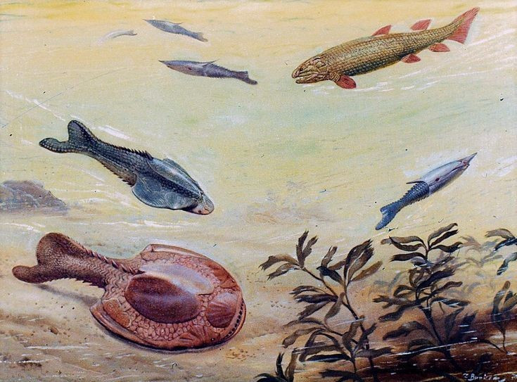 Sống vào kỷ Devon. Pteraspis xuất hiện cách đây khoảng 400 triệu năm trong kỷ Devon, thời kỳ được gọi là “thời đại của cá”. Ảnh: Pinterest.