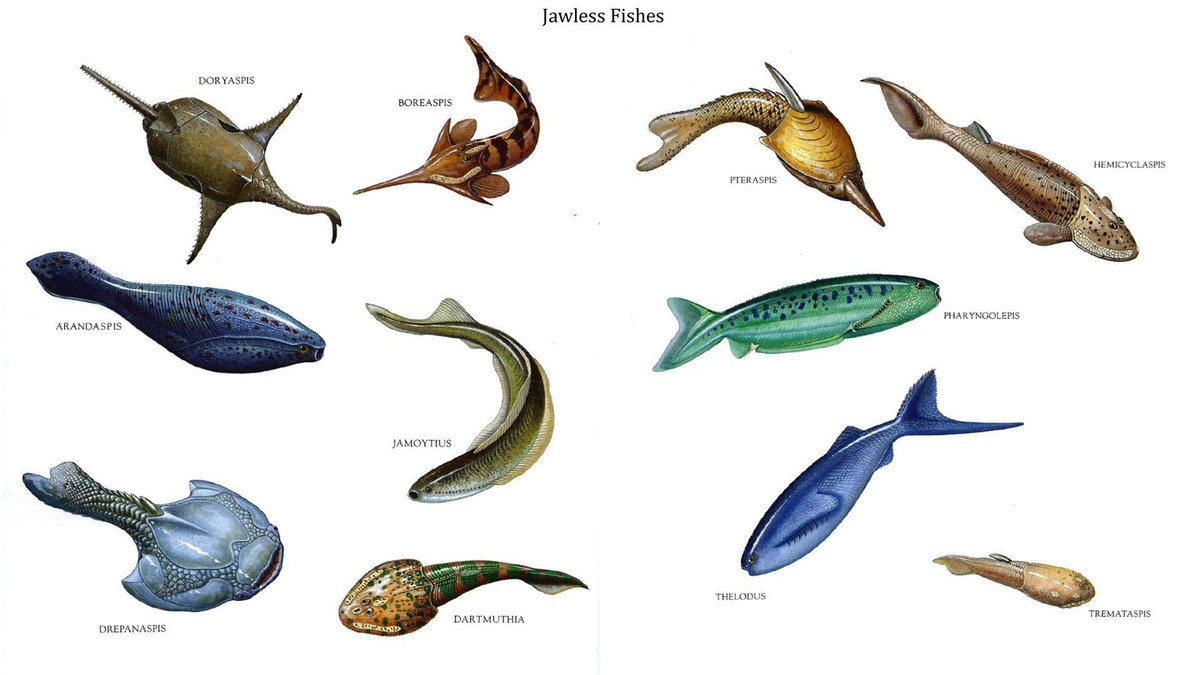 Thuộc nhóm cá không hàm. Chúng thuộc lớp cá giáp không hàm (Agnatha), tức là không có hàm như cá hiện đại mà chỉ có miệng đơn giản để hút thức ăn. Ảnh: Pinterest.