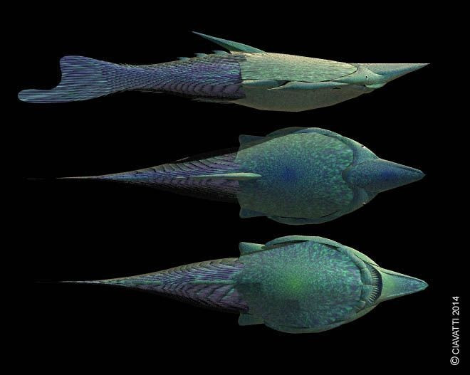 Kích thước khá nhỏ bé. Pteraspis chỉ dài khoảng 20–30 cm, nhỏ hơn nhiều so với nhiều loài cá cổ đại khác. Ảnh: Pinterest.