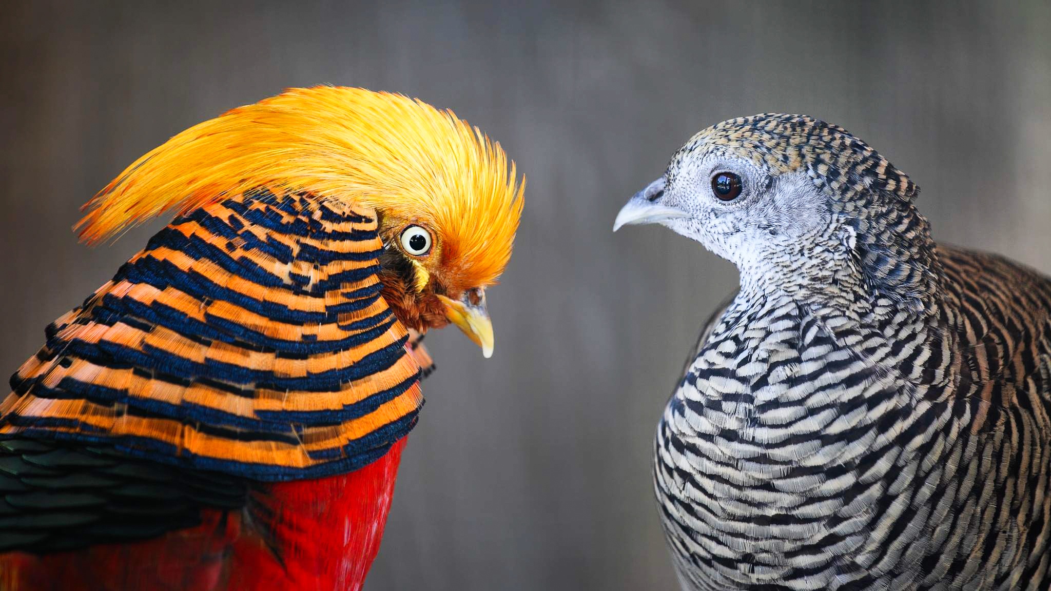Ngoại hình khác nhau giữa chim trĩ vàng trống và mái. Ảnh: VCG, Blickwinkel/Alamy.