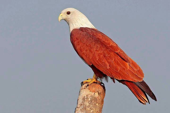 Bộ lông đỏ nâu và đầu trắng rất dễ nhận biết. Diều lửa có thân nâu đỏ rực, đầu và ngực trắng tương phản rõ, tạo nên vẻ ngoài nổi bật giữa bầu trời và cảnh quan ven biển. Ảnh: Pinterest.