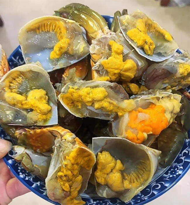 Khi hấp chín, lớp gạch vàng dẻo quánh, thơm béo nhưng không ngấy. Ảnh: HaisanHoangLong