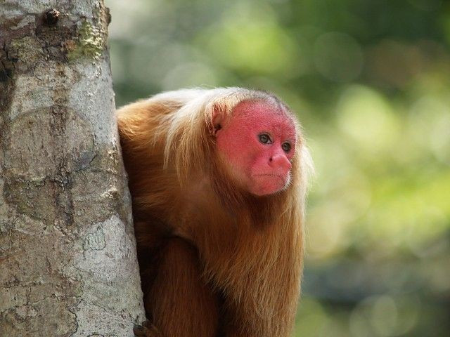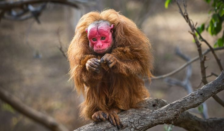Đang bị đe dọa tuyệt chủng. Mất rừng và săn bắt khiến quần thể khỉ trọc uakari giảm mạnh, trở thành loài cần được bảo vệ khẩn cấp. Ảnh: Pinterest.