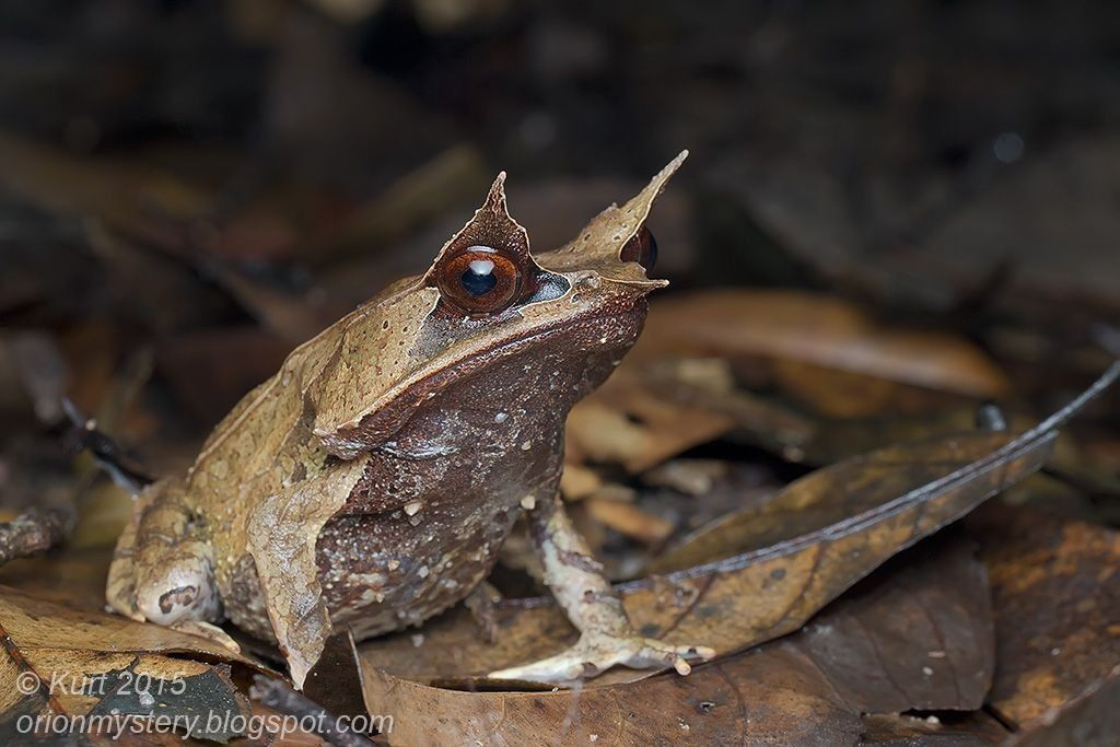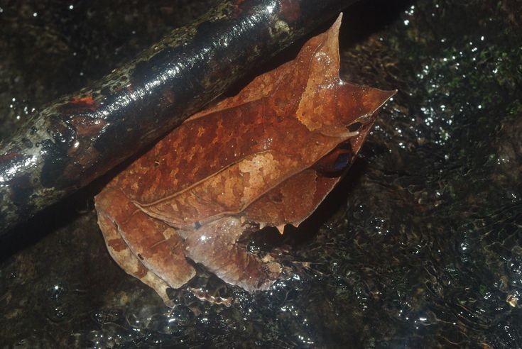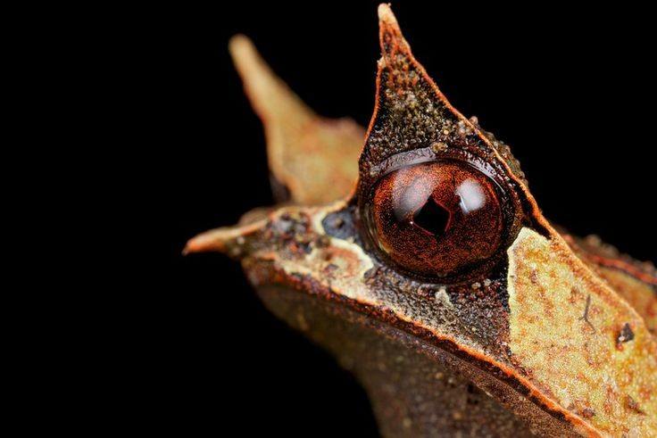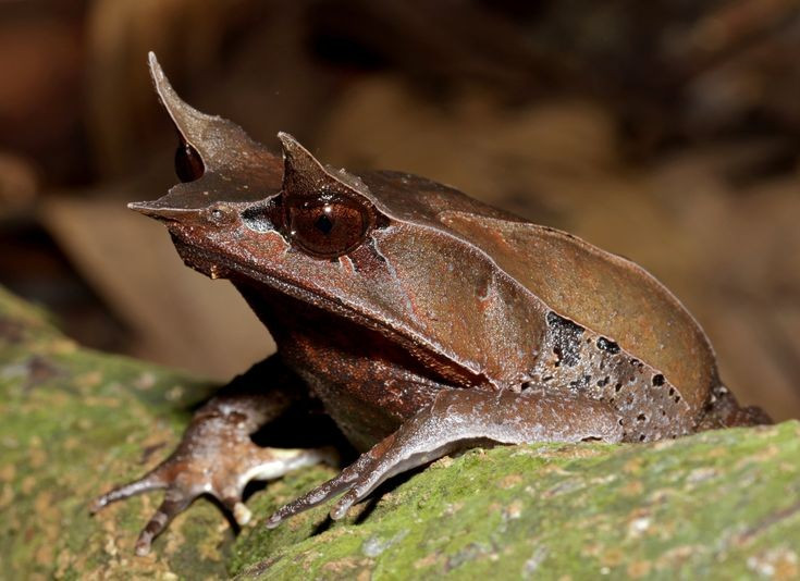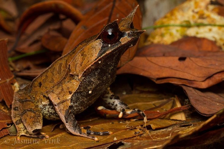 Cóc gai mắt Malay có “mũi dài” đặc trưng mô phỏng lá khô. Phần mũi nhọn khiến chúng trông như một chiếc lá mục, giúp tránh kẻ săn mồi rất hiệu quả. Ảnh: Pinterest.