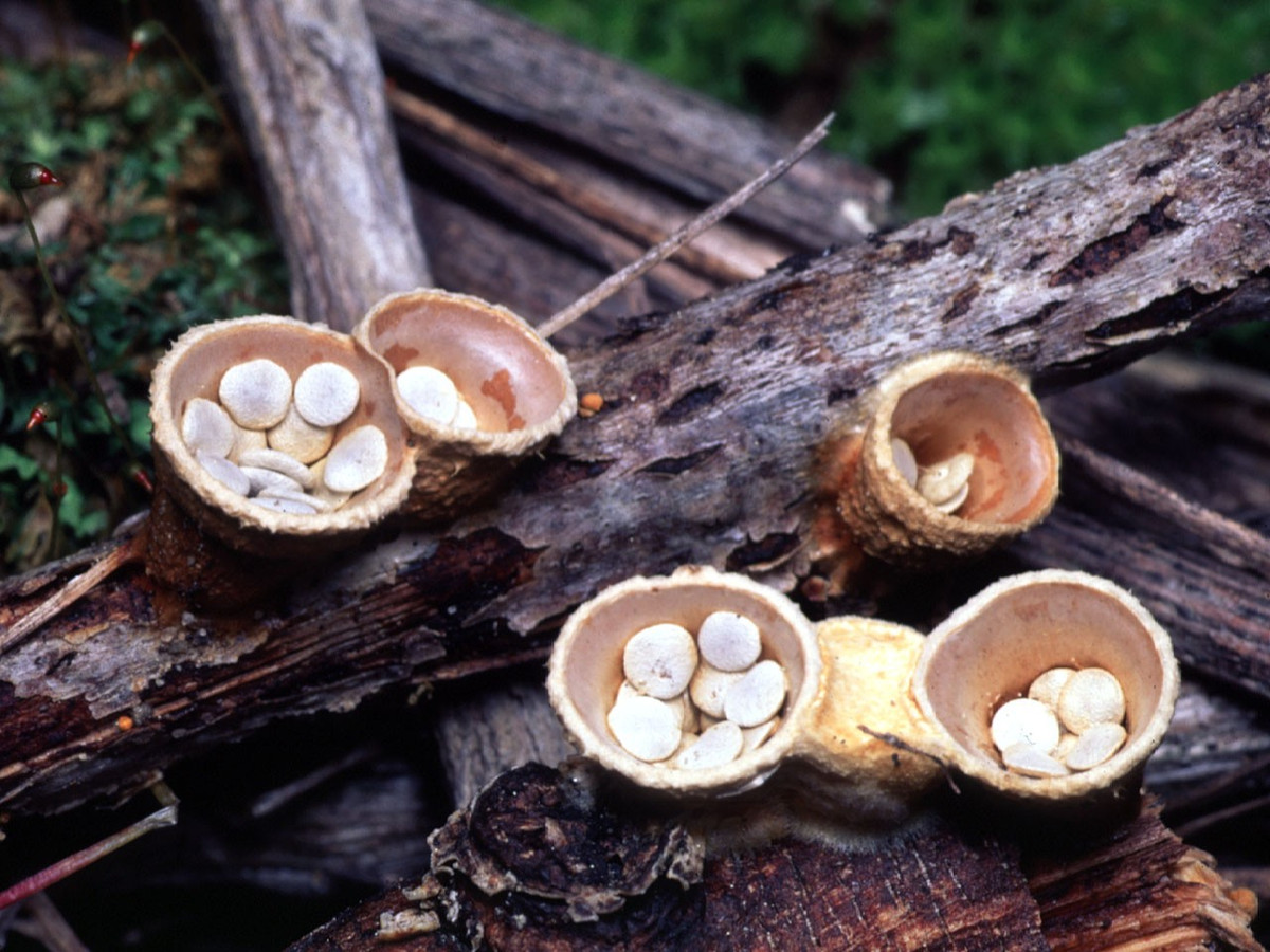 Chúng phát triển mạnh sau mưa. Nấm tổ chim thường mọc trên gỗ mục, thân cây hoặc mùn cưa khi độ ẩm cao. Ảnh: Pinterest.
