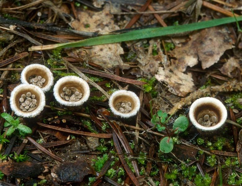 Không độc nhưng không ăn được. Dù không gây độc, nấm tổ chim quá nhỏ và cũng không có kết cấu phù hợp cùng mùi vị dễ chịu để sử dụng trong ẩm thực. Ảnh: mykoweb.com.