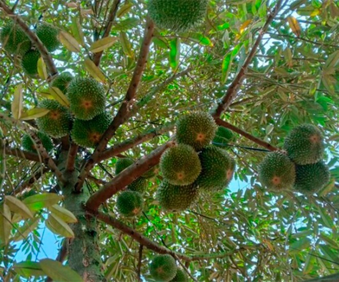 Sầu riêng Black Thorn có nguồn gốc từ Penang, Malaysia – “thủ phủ” của nhiều giống sầu riêng nổi tiếng thế giới. Tên gọi Black Thorn (tạm dịch: gai đen) xuất phát từ đặc điểm phần đầu gai có màu sẫm gần như đen, tạo dấu ấn khác biệt ngay từ vẻ ngoài. Đây cũng là chi tiết giúp người sành ăn dễ dàng nhận diện giống sầu riêng cao cấp này giữa nhiều loại khác trên thị trường.