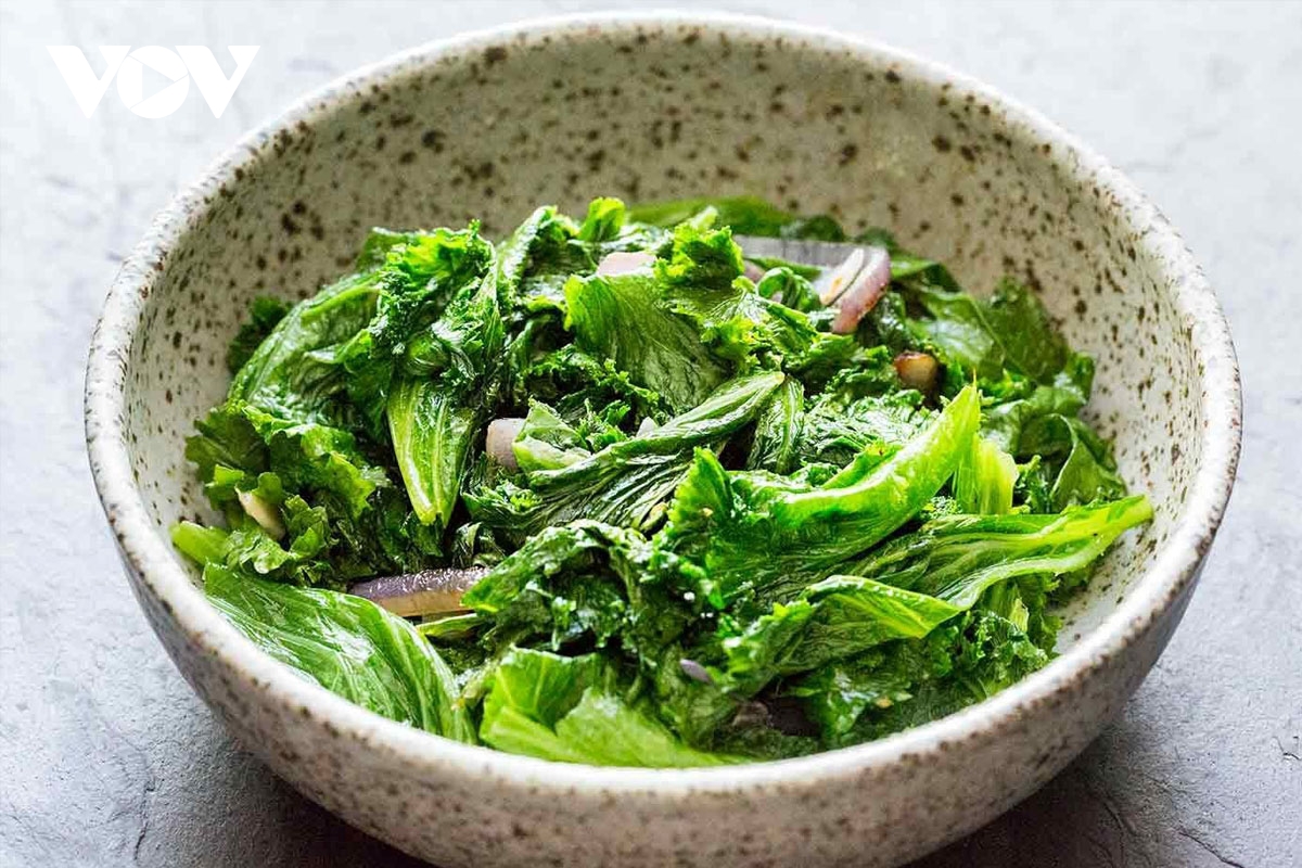 Cải bẹ xanh là một trong những loại rau lá xanh cung cấp vitamin K vượt trội. Chỉ cần một khẩu phần cải bẹ xanh, cơ thể đã nhận được lượng vitamin K cần thiết cho cả ngày. Vitamin K nổi tiếng với vai trò quan trọng trong việc hỗ trợ quá trình đông máu, giúp vết thương nhanh lành. Ngoài ra, vitamin K còn là dưỡng chất thiết yếu để duy trì sức khỏe xương khớp, giúp gắn kết canxi vào xương, từ đó giảm nguy cơ loãng xương và các vấn đề về xương khác.