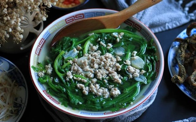 - Canh cải cúc: Nấu cùng thịt nạc băm hoặc trứng để bổ sung protein, giúp bữa ăn thanh nhẹ mà vẫn đủ dinh dưỡng. Món canh này thích hợp cho bữa tối hoặc thực đơn “detox” ngắn ngày.