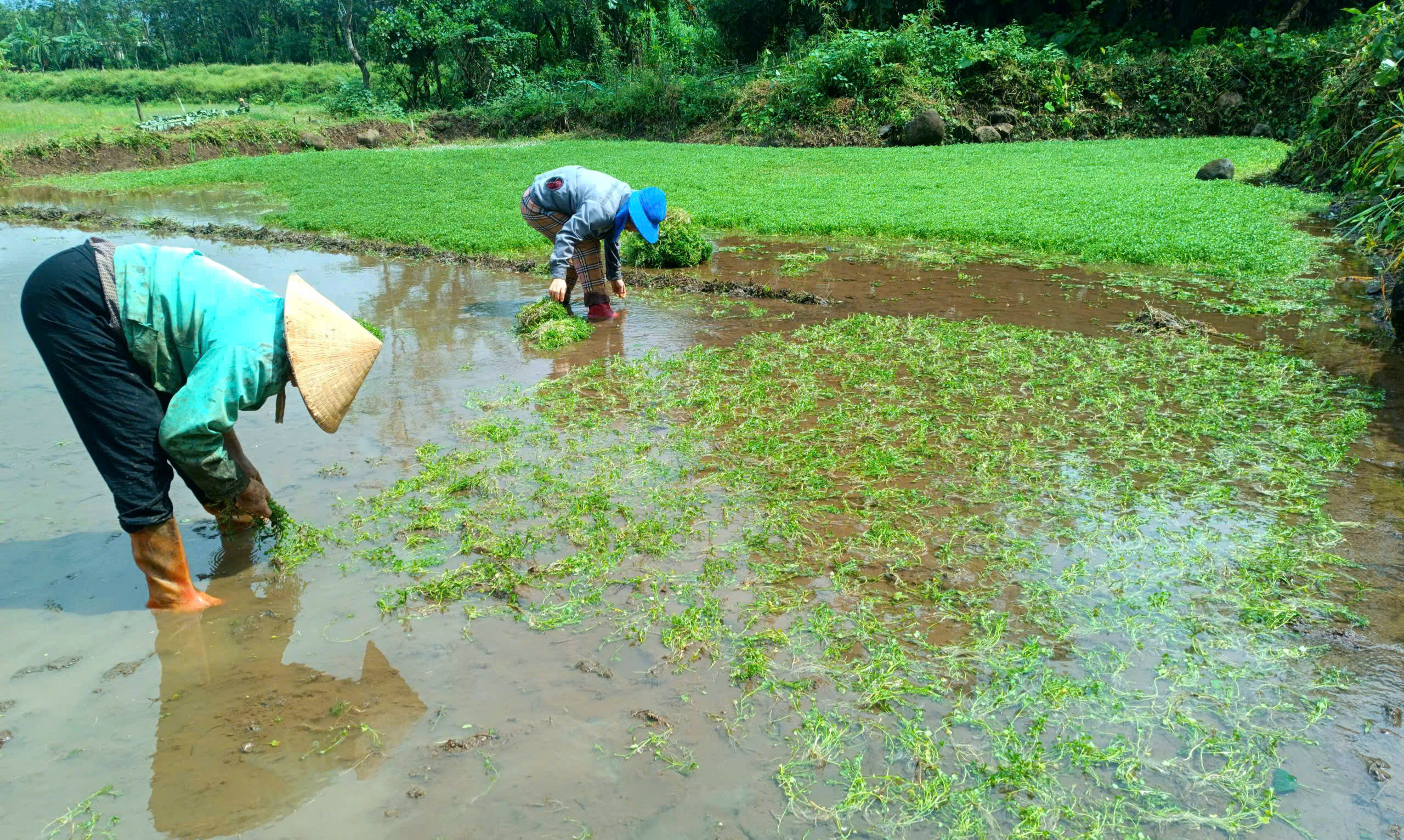 Người dân thu hoạch rau liệt.