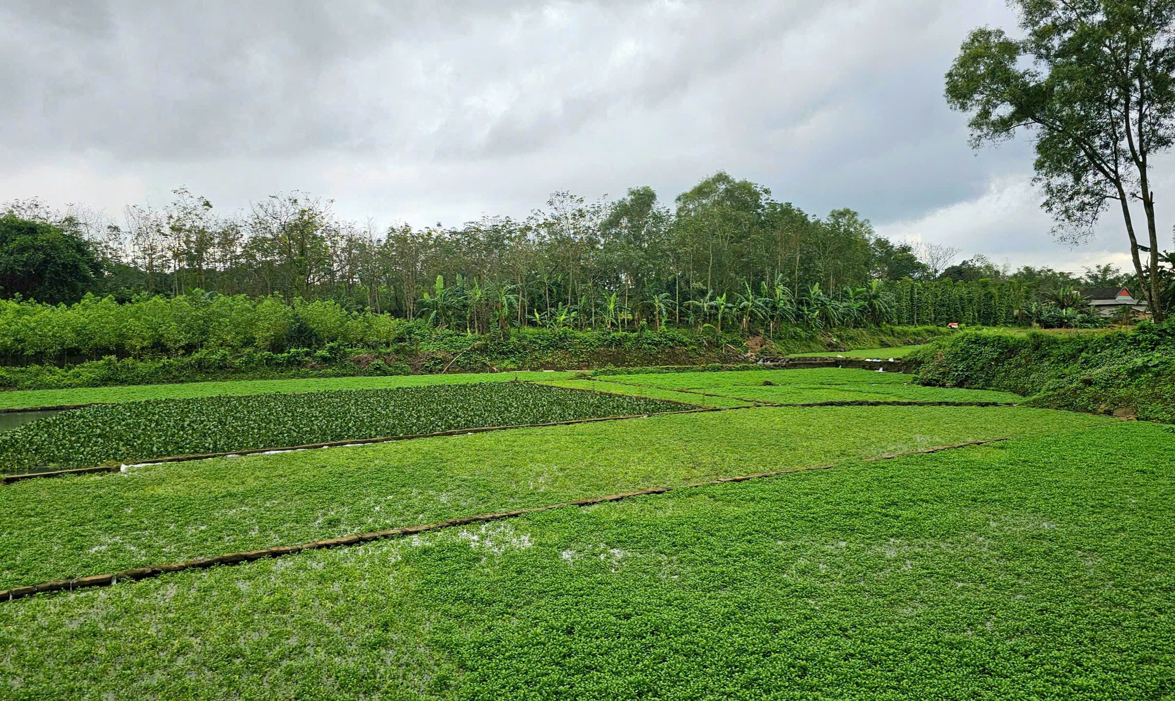 Ruộng rau liệt phát triển từ mạch nước của giếng cổ.