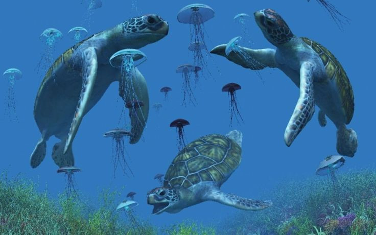 Ăn sứa và sinh vật mềm. Protostega không có hàm răng, thay vào đó là mỏ cứng dùng để xé thức ăn. Ảnh: Pinterest.