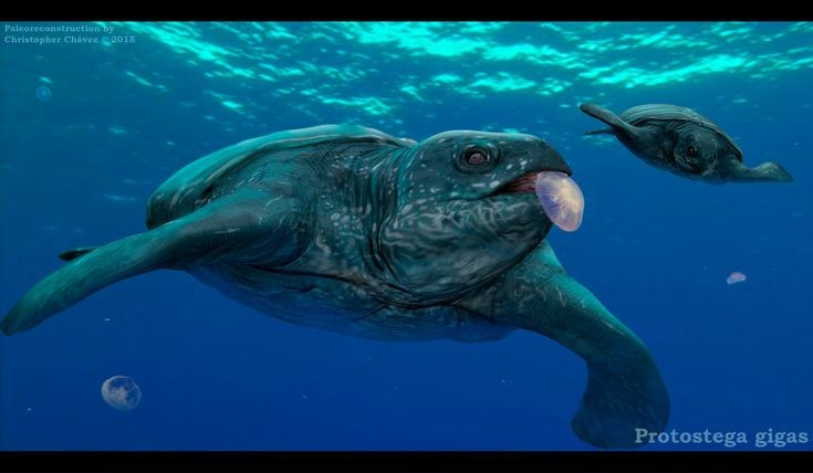 Kích thước khổng lồ. Một cá thể Protostega trưởng thành có thể dài hơn 3 mét và nặng gần 1 tấn. Ảnh: Pinterest.