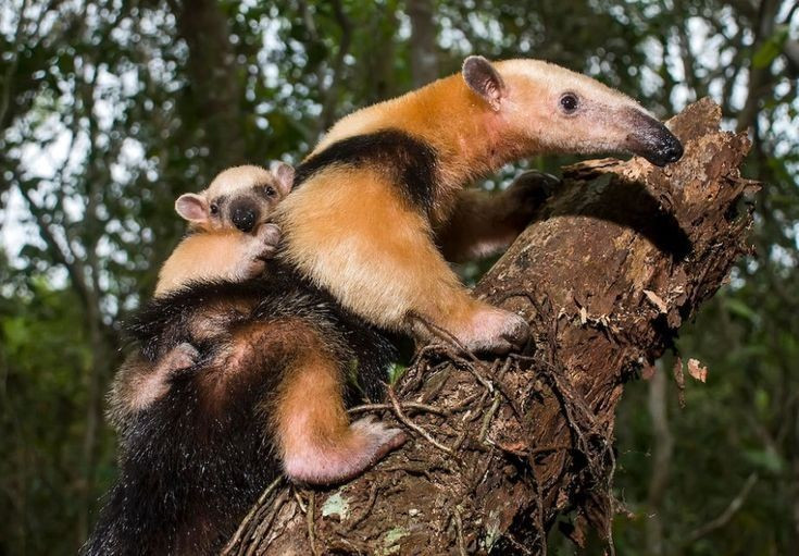 Tamandua sống cả ở trên cây. Khác với nhiều loài thú ăn kiến khổng lồ cùng họ, thú ăn kiến Tamandua leo cây giỏi nhờ bộ vuốt cong khỏe mạnh. Ảnh: Pinterest.