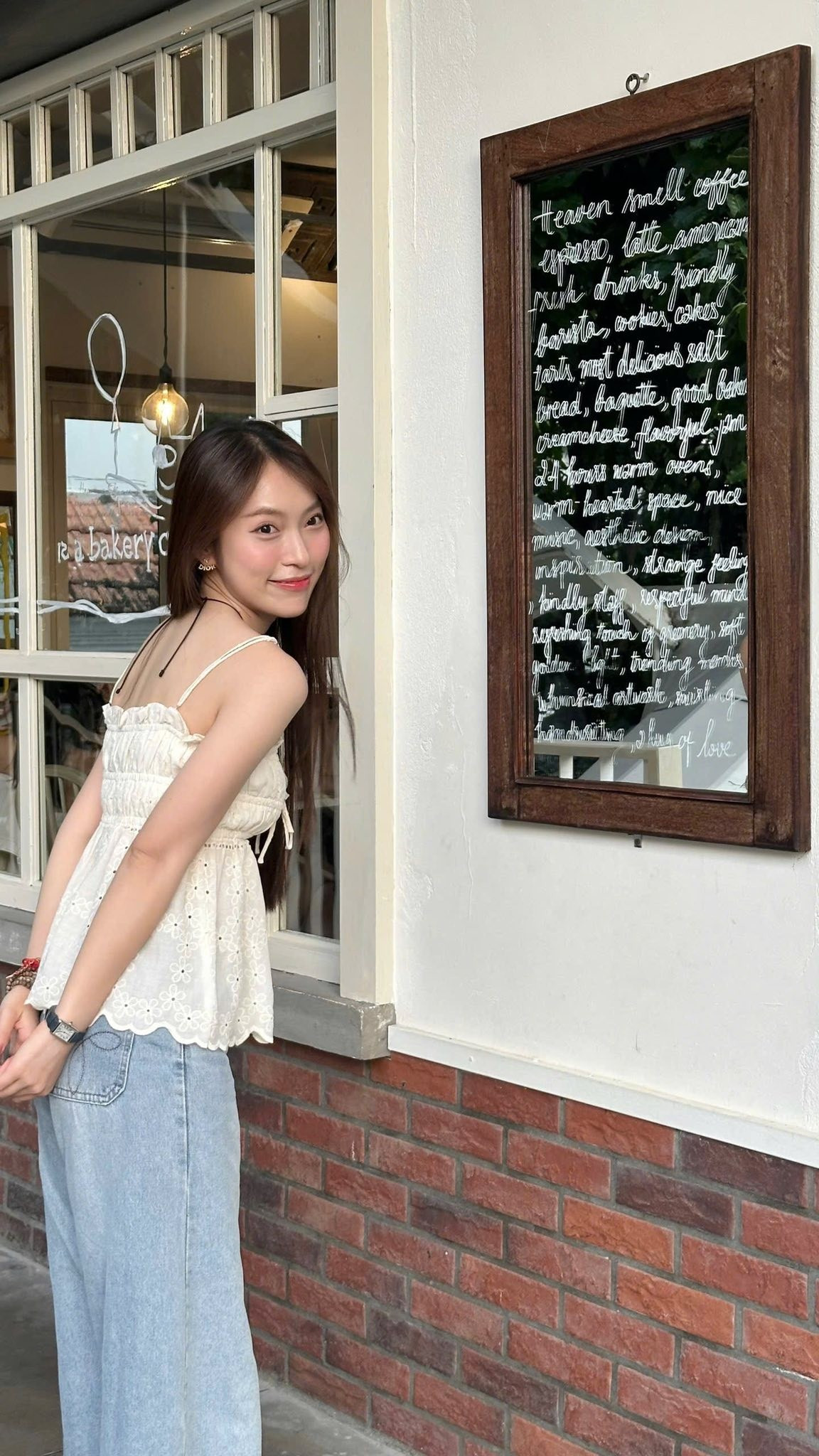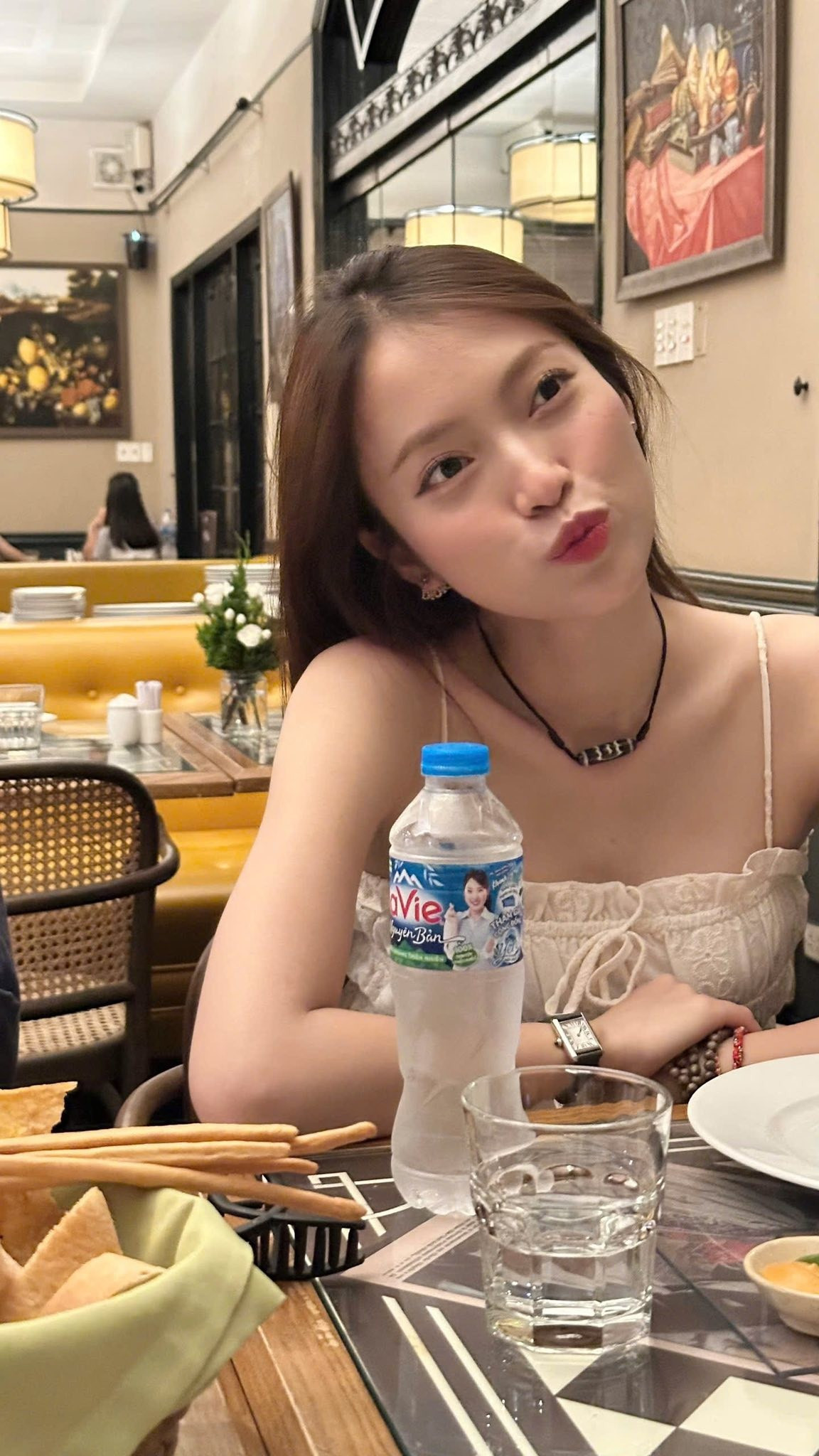 Dù chỉ diện áo hai dây đơn giản, xương quai xanh gợi cảm cùng làn da trắng sứ vẫn giúp Khánh Vy nổi bần bật trong khung hình.