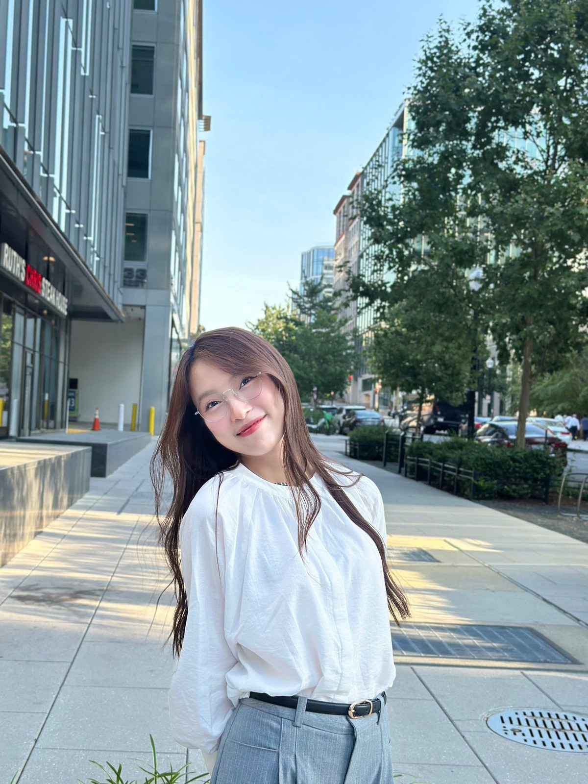 Không hổ danh là MC của Đường Lên Đỉnh Olympia, Khánh Vy biến những chiếc kính cận trở thành phụ kiện thời trang đắt giá, tôn lên vẻ đẹp tri thức nhưng không kém phần sành điệu.