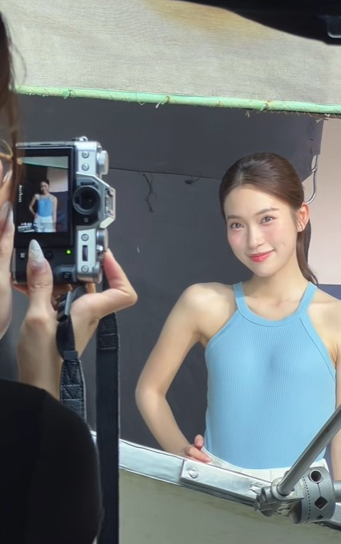 Hay ngay cả trong hậu trường chụp ảnh, qua màn hình máy ảnh chưa chỉnh sửa, nhan sắc của Khánh Vy vẫn giữ được độ sắc nét.