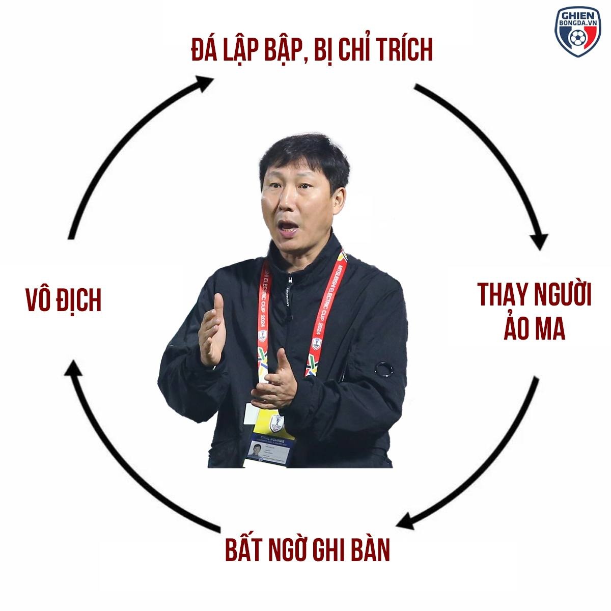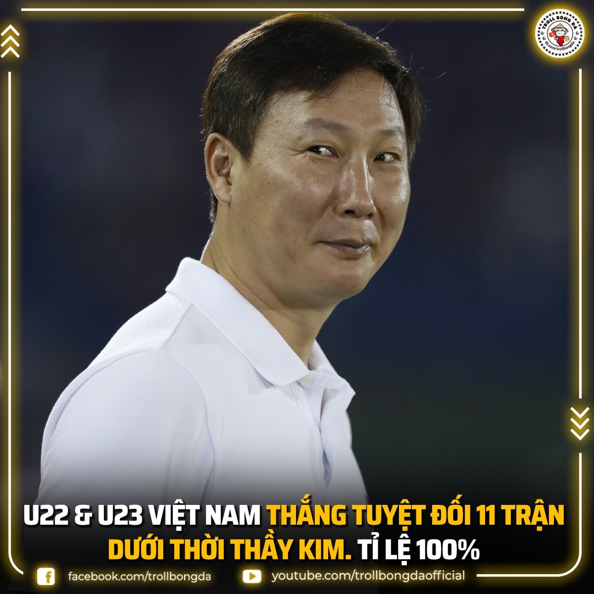 Với HLV Kim Sang-sik, đây là danh hiệu thứ ba kể từ khi ông tiếp quản các đội tuyển Việt Nam, sau chức vô địch ASEAN Cup 2024 và giải U23 Đông Nam Á 2025. Kể từ khi chính thức nắm quyền các đội tuyển Việt Nam vào tháng 5/2024, chiến lược gia người Hàn Quốc duy trì thành tích vào chung kết 100% ở các giải đấu khu vực và toàn thắng trong các trận đấu quyết định. Ảnh: Troll Bóng Đá/Facebook.