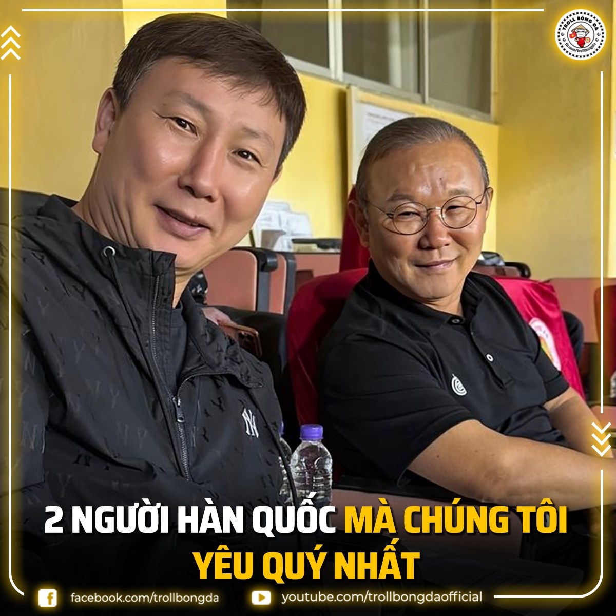 Nhiều người hâm mộ cũng đặt HLV Kim Sang-sik lên bàn cân so sánh với người tiền nhiệm Park Hang-seo - nhà cầm quân từng đưa bóng đá Việt Nam lần đầu giành huy chương vàng SEA Games vào năm 2019. Một bình luận nhận được hàng trăm lượt yêu thích viết: "Thầy Park dùng ma thuật trắng, thầy Kim dùng ma thuật đen". Ảnh: Troll Bóng Đá/Facebook.