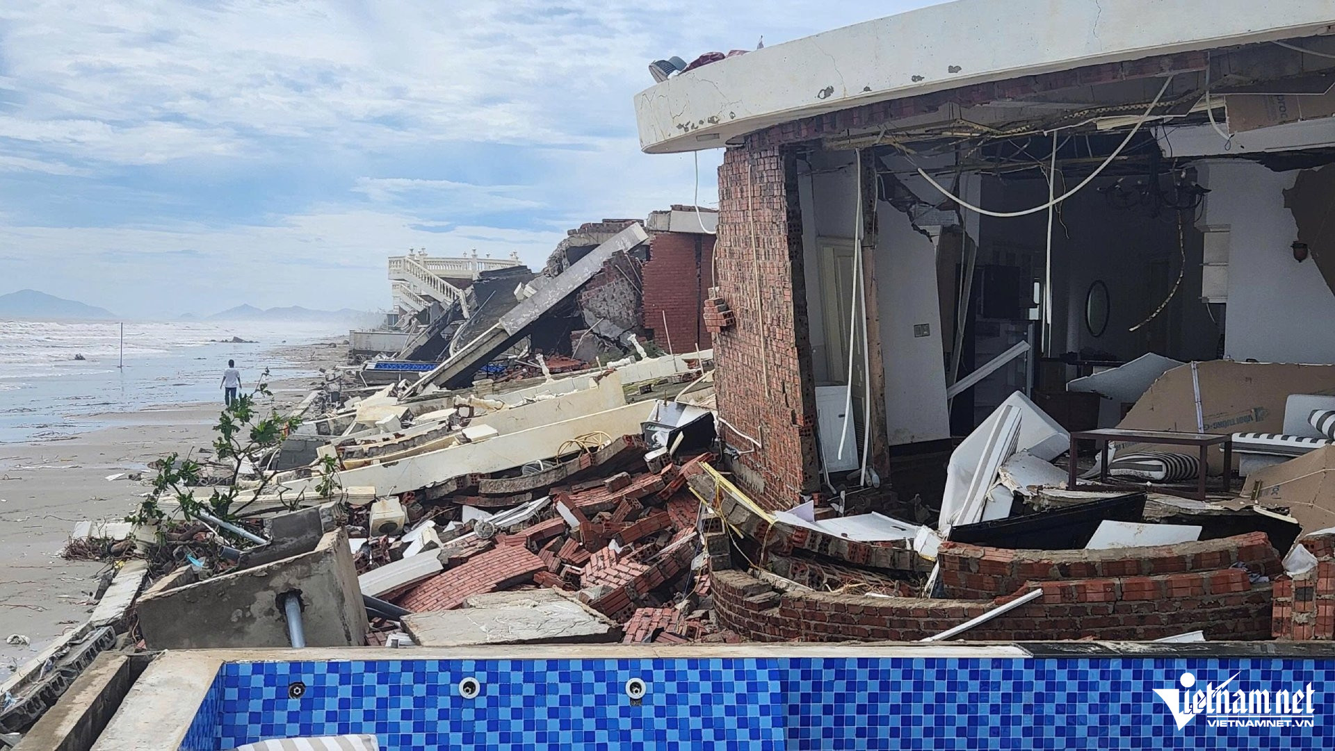 Theo Sở Xây dựng, quá trình kiểm tra hiện trường, đoàn giám định đã thu thập hồ sơ và thực hiện giám định, xác định 23 căn biệt thự nằm tiếp giáp khu vực kè biển bị hư hỏng hoặc sụp đổ; đồng thời, một số hạng mục công trình khác như kè biển, bể bơi và tường rào cũng bị hư hỏng nghiêm trọng.