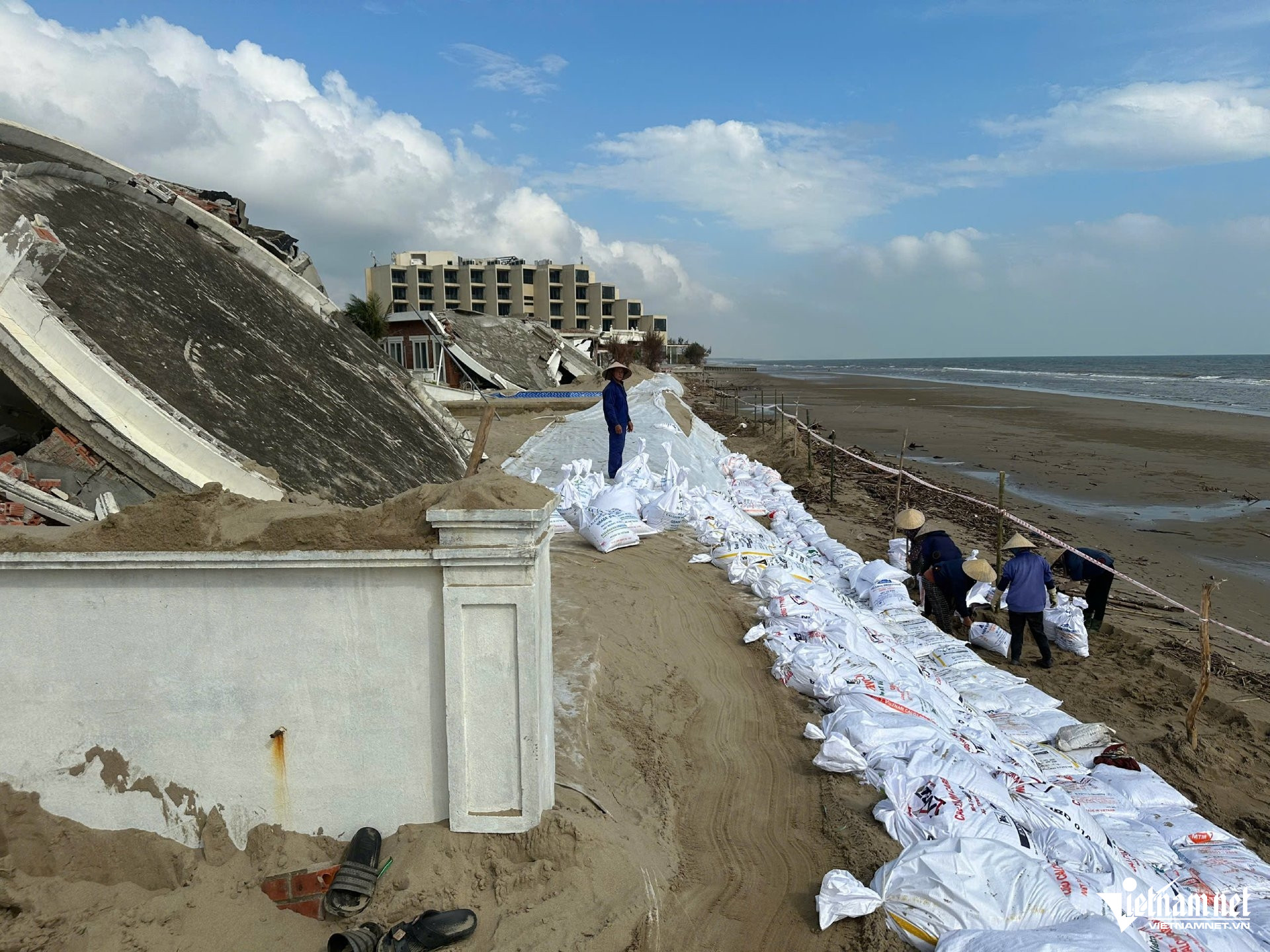 Theo báo cáo, cơn bão vừa qua khiến 23 căn biệt thự sát biển bị thiệt hại nặng, trong đó nhiều căn sập hoàn toàn. Ngoài ra, 13 căn ở dãy thứ hai cũng bị ảnh hưởng.