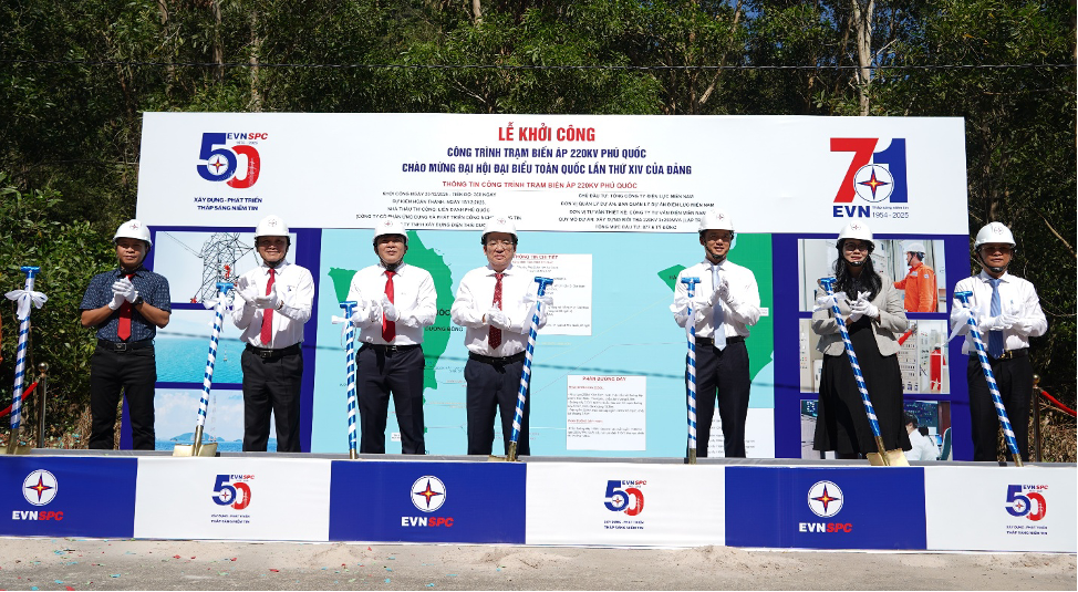 Sáng ngày 20/12, EVNSPC đã khởi công xây dựng công trình Trạm biến áp (TBA) 220kV Phú Quốc (tỉnh An Giang). Công trình có quy mô công suất là 3x250MVA, chiều dài tuyến cáp ngầm 22 mạch dài 2,65 km và 15,5km đường dây trên không, với tổng mức đầu tư 877,61 tỷ đồng. Khi đi vào vận hành, TBA 220kV Phú Quốc sẽ tiếp nhận điện từ đường dây 220kV Kiên Bình – Phú Quốc và chuyển từ vận hành cấp điện áp 110kV thành 220kV, hoàn thiện đấu nối lưới điện 110kV trên toàn đặc khu bảo đảm cấp điện trong vận hành bình thường với tiêu chí N-1.