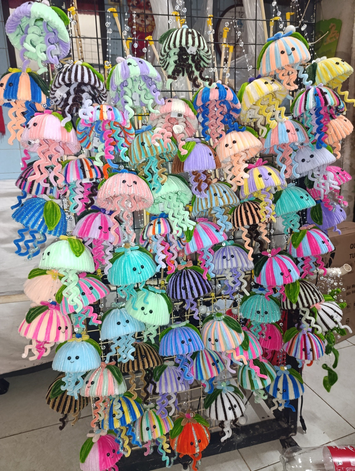 Lấy cảm hứng từ hình ảnh con sứa trong lòng đại dương, những chiếc lồng đèn này được tạo hình với phần thân nhiều màu sắc, cùng những xúc tu lượn sóng rực rỡ.