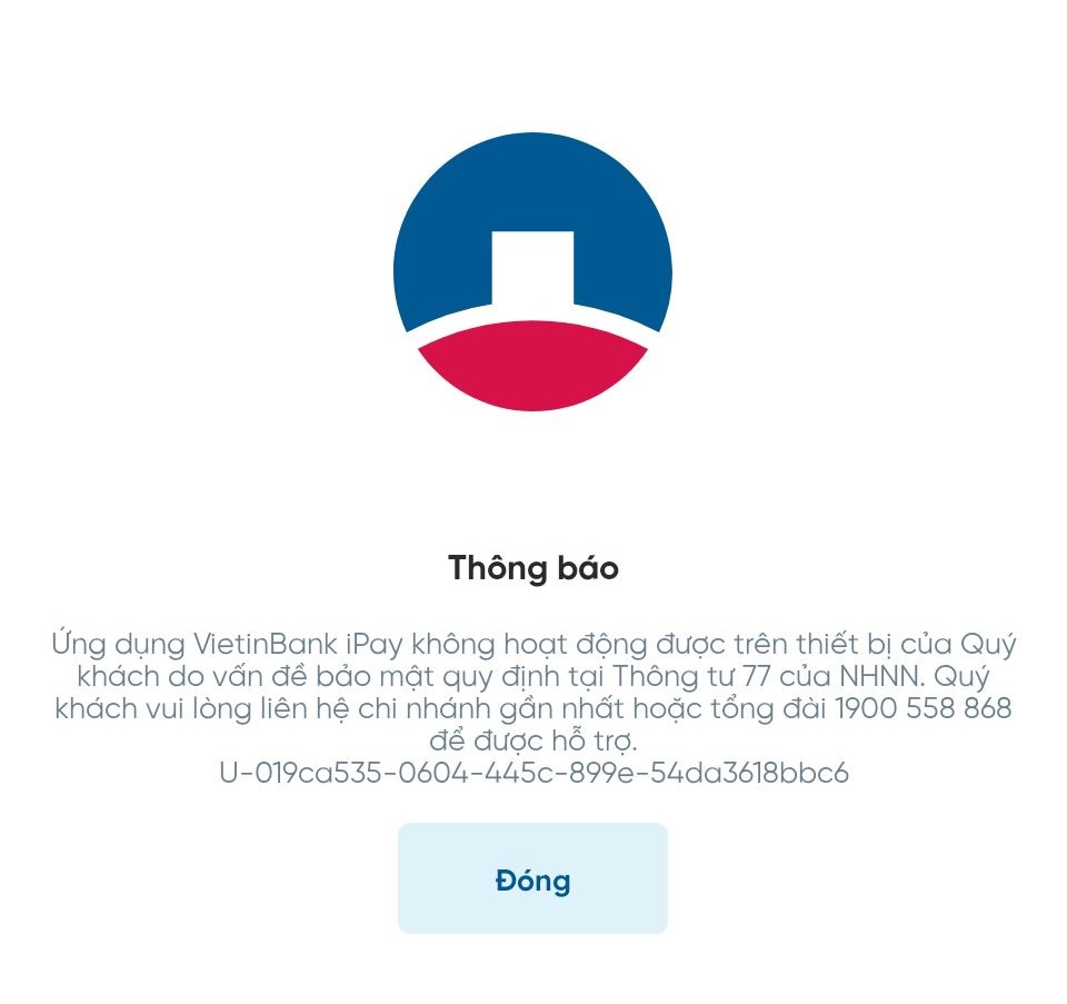Ứng dụng ngân hàng bị chặn trên các thiết bị không đáp ứng tiêu chuẩn bảo mật.