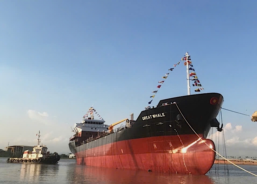 Đóng tàu Bạch Đằng đóng mới, hạ thủy tàu chở dầu hóa chất quốc tế.