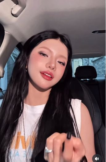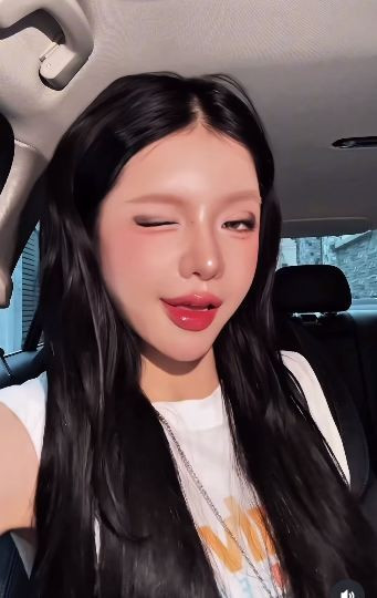 Với gương mặt được trang điểm kỹ lưỡng, đặc biệt là phần má hồng và đôi mắt to tròn, nữ Tiktoker khiến fan phải "replay" (phát đi phát lại) liên tục đoạn video đu trend của mình. (Ảnh: IG @l.ciin)