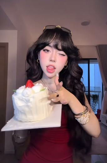 Những biểu cảm như liếm nhẹ bánh kem trên ngón tay hay chớp mắt tinh nghịch đã giúp video của cô thu hút hàng loạt lượt tương tác. (Ảnh: IG @baokhuyen.susan)
