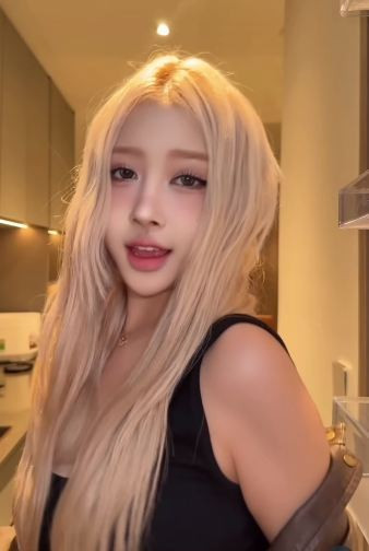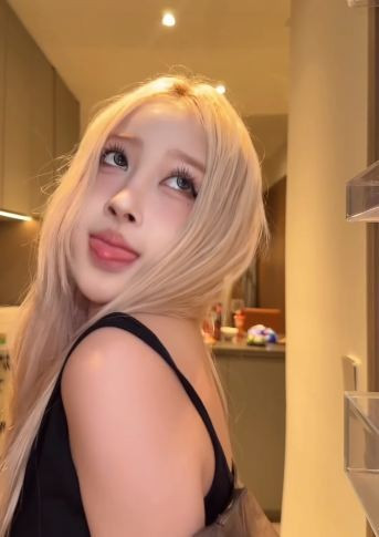 Mái tóc vàng bạch kim nổi bật cùng lớp trang điểm sắc sảo, nhấn mạnh vào đôi mắt sâu và đường nét khuôn mặt, tạo nên vẻ ngoài cực kỳ thời thượng. (Ảnh: IG @lh.dieu)