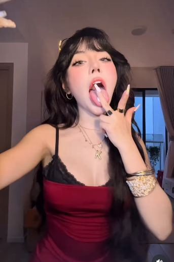 Thời gian gần đây, trào lưu "Sugar On My Tongue" trên nền tảng TikTok đã trở thành một cơn sốt, thu hút đông đảo bạn trẻ tham gia, đặc biệt là các hot girl và TikToker nổi tiếng. (Ảnh: IG @baokhuyen.susan)