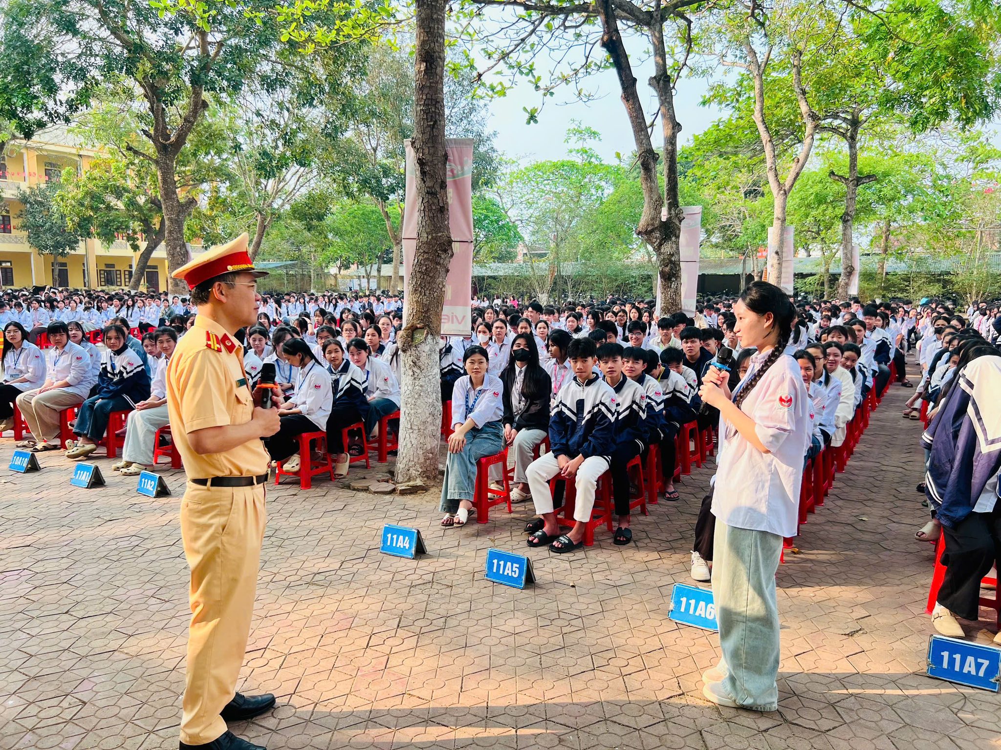 Thượng tá Nguyễn Hàm Thắng, Phó trưởng Phòng CSGT Công an tỉnh Nghệ An chia sẻ: "Chương trình nằm trong kế hoạch phối hợp liên bộ Công an và Bộ Giáo dục và Đào tạo. Chúng tôi bắt đầu từ tháng 3/2026 và quyết tâm hoàn thành tuyên truyền tại 100% cơ sở giáo dục trên toàn tỉnh ngay trong tháng 5/2026".