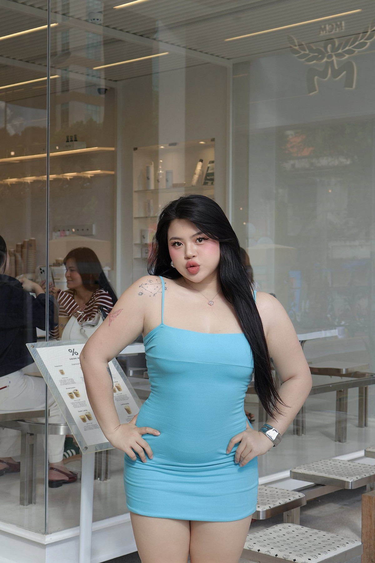 Diện lên mình chiếc váy xanh thiên thanh, Bảo Khuyên Susan (Nguyễn Lê Bảo Khuyên, sinh năm 2001) toát lên vẻ ngoài nóng bỏng và sắc sảo. (Ảnh: IG @baokhuyen.susan)