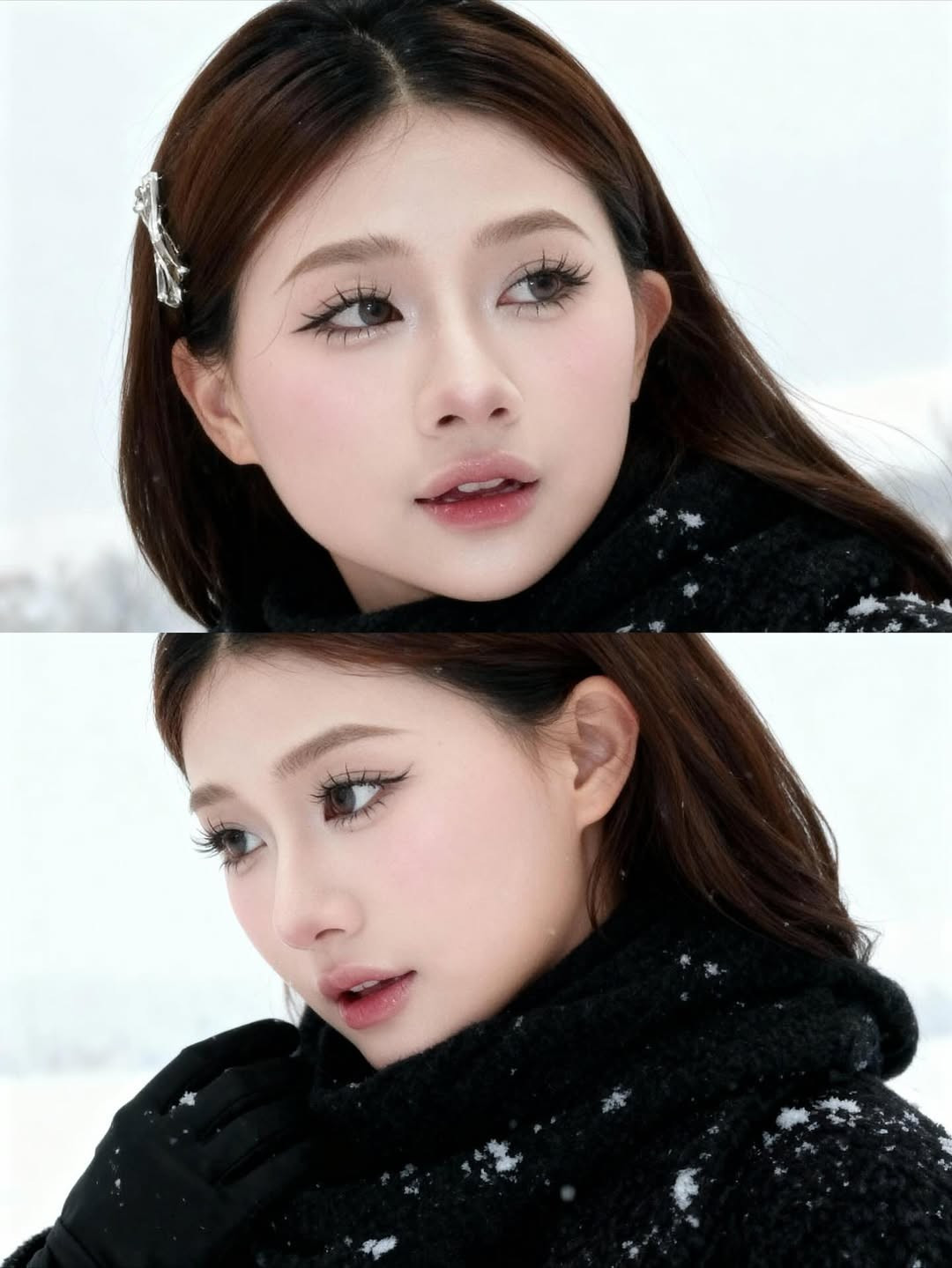 Từ trang phục, ánh mắt đến các chi tiết nhỏ như bông tuyết dính trên vai áo đều được tạo nên vô cùng chân thật. (Ảnh: IG @louispham203)