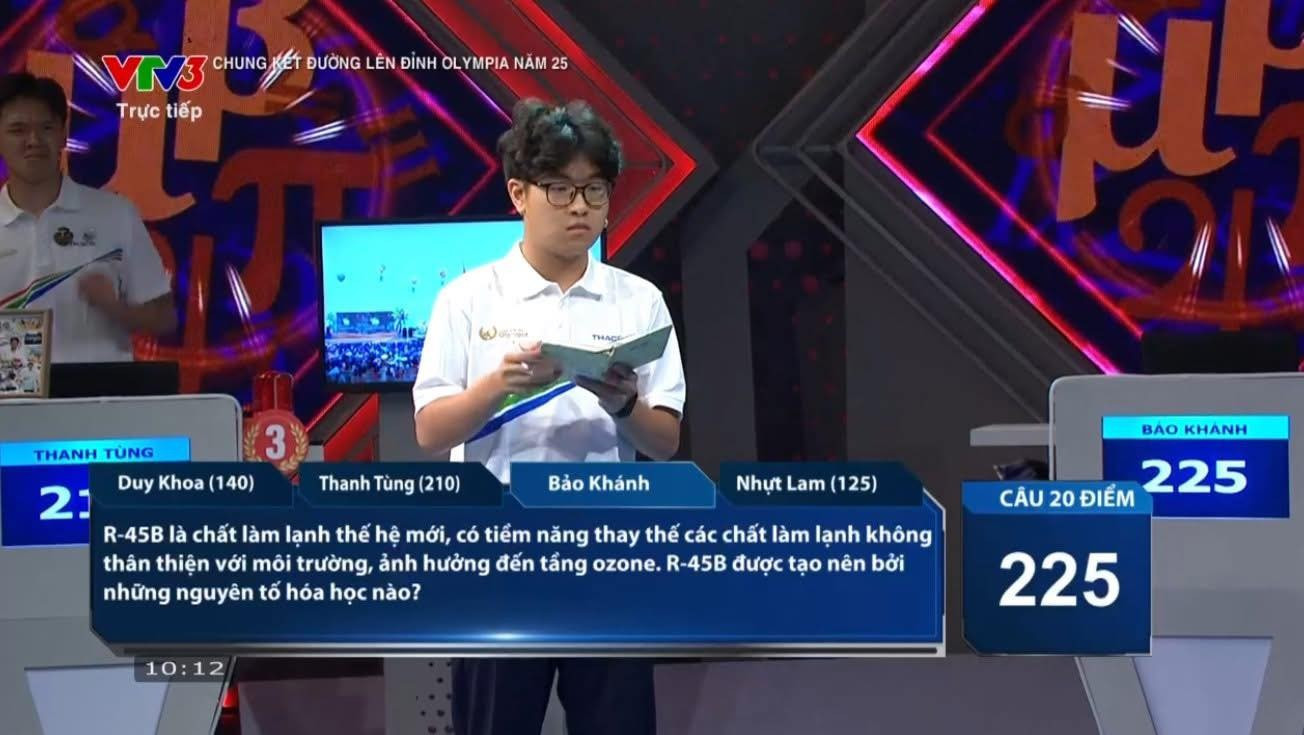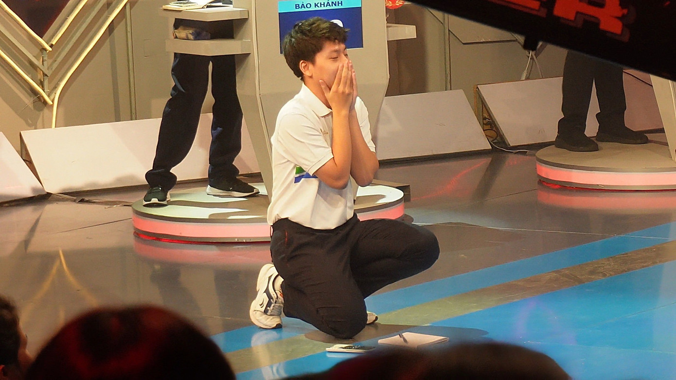 Bên cạnh những khoảnh khắc đáng yêu của các "nhà leo núi", Chung kết Olympia năm nay cũng ghi nhận giây phút đầy tiếc nuối. Cụ thể, trong phần thi Về đích, chỉ mất 30 giây để giải ra đáp án ở câu hỏi toán học, nhưng không làm tròn kết quả đến hàng đơn vị theo yêu cầu đề bài.