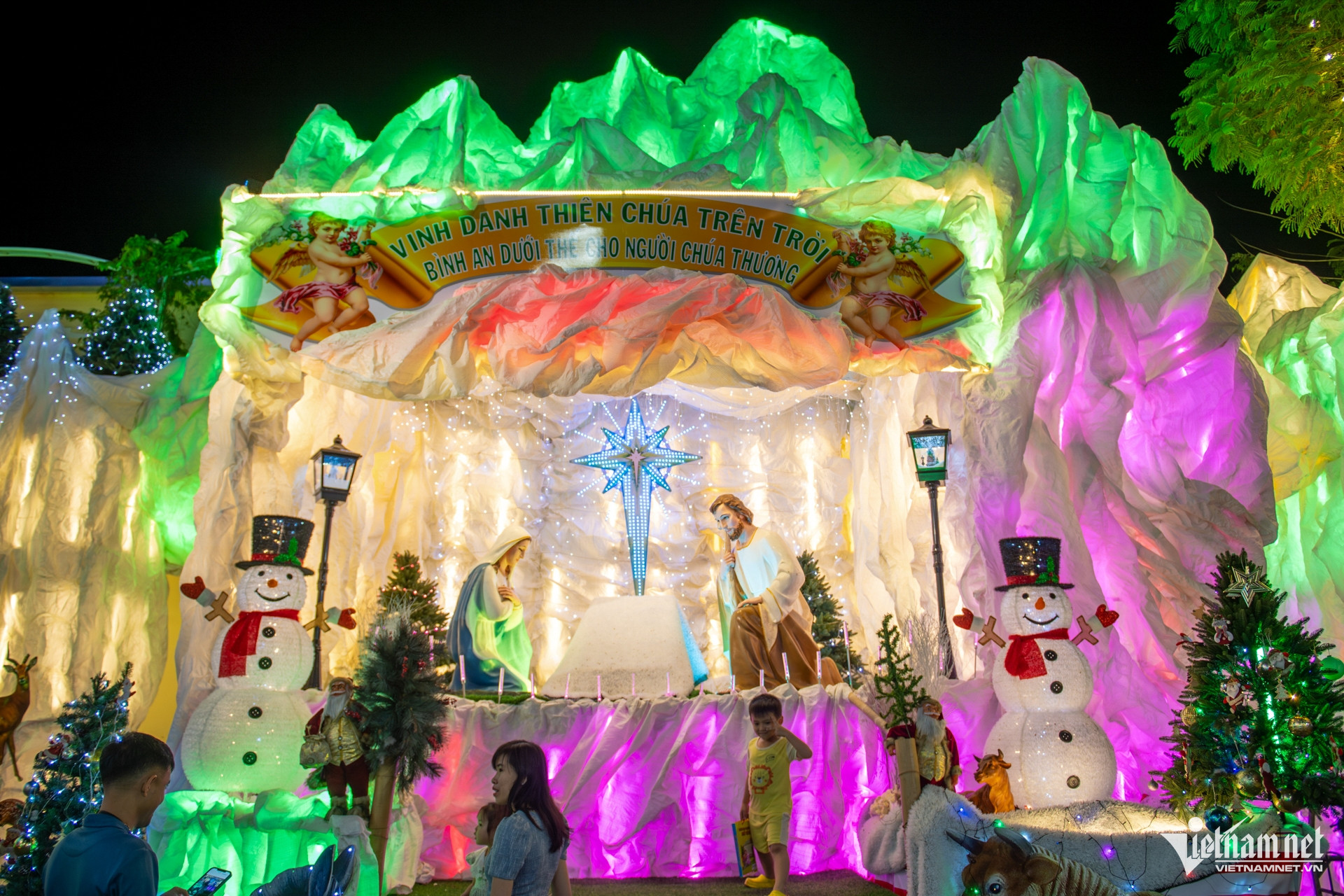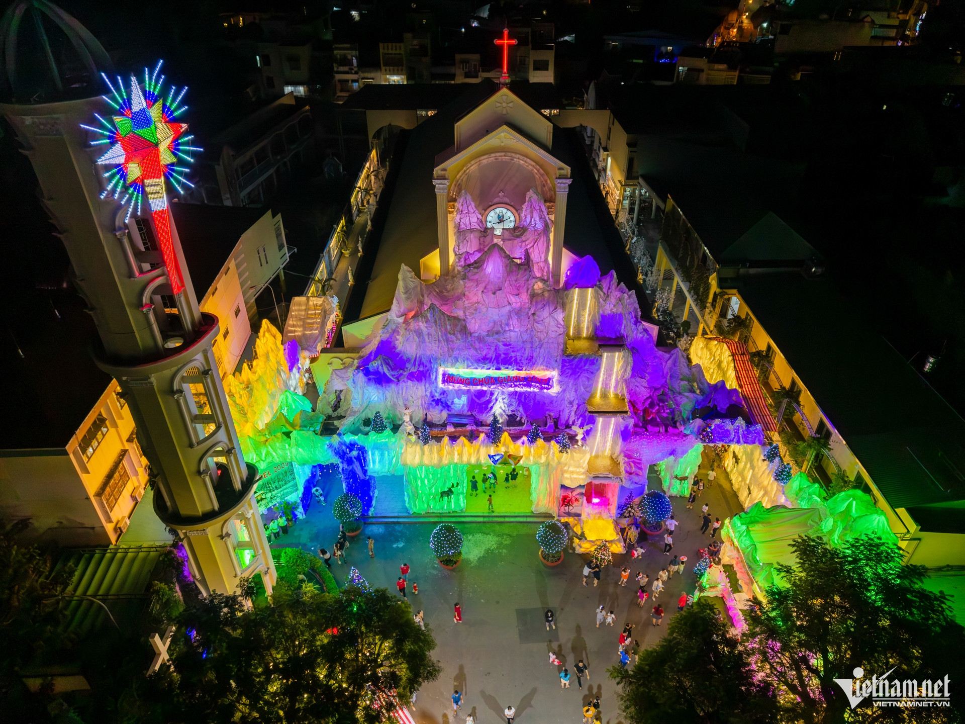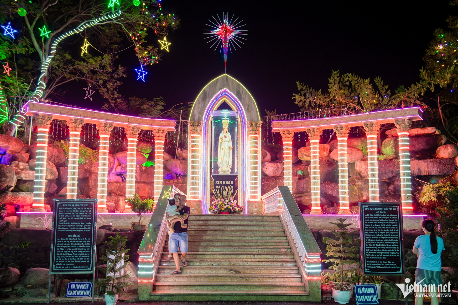 Khuôn viên nhà thờ được đầu tư trang trí sớm với hệ thống ánh sáng nghệ thuật kết hợp các tiểu cảnh tái hiện những câu chuyện trong Kinh Thánh