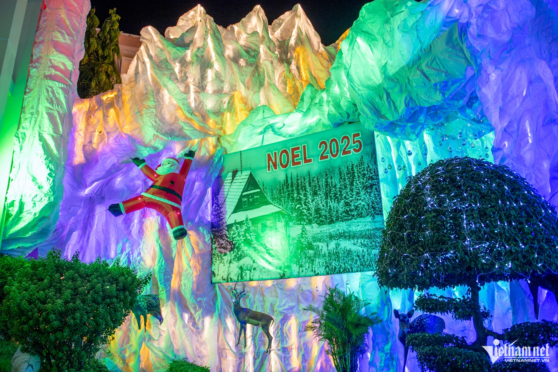 Cây thông Noel cao khoảng 25m, được trang trí dày đặc bóng đèn, trở thành điểm nhấn trong không gian lễ hội. Theo đại diện giáo xứ, việc trang trí sớm hơn thường lệ do năm 2025 được chọn là Năm Thánh của Giáo hội Công giáo Hoàn vũ.