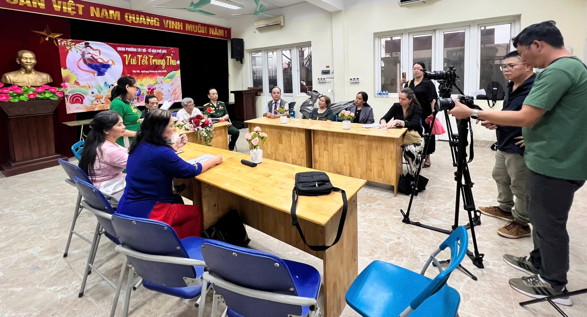 Đoàn làm phim tác nghiệp tại phường Tây Hồ (Hà Nội). Ảnh: VTV
