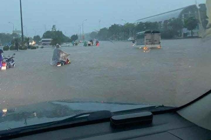 Hình ảnh đường phố ngập sáng 7/10. Ảnh: Trần Thế Anh