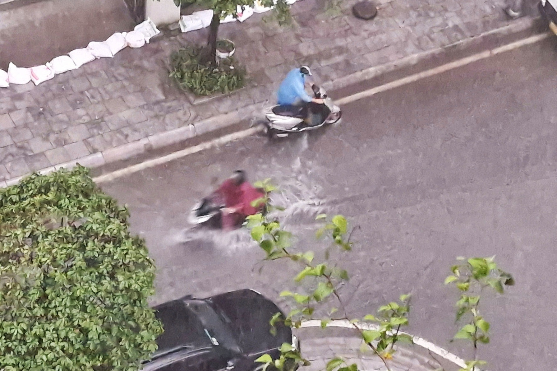 Mưa lớn gây ngập lụt nhiều tuyến phố ở Hà Nội sáng nay 7/10, kèm sấm sét.