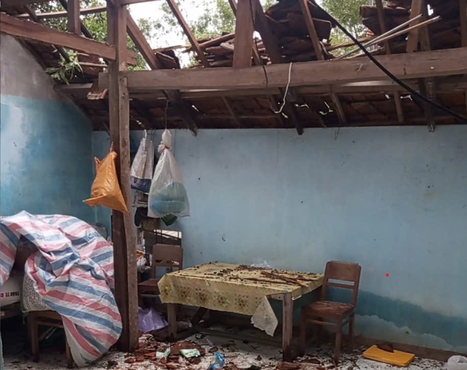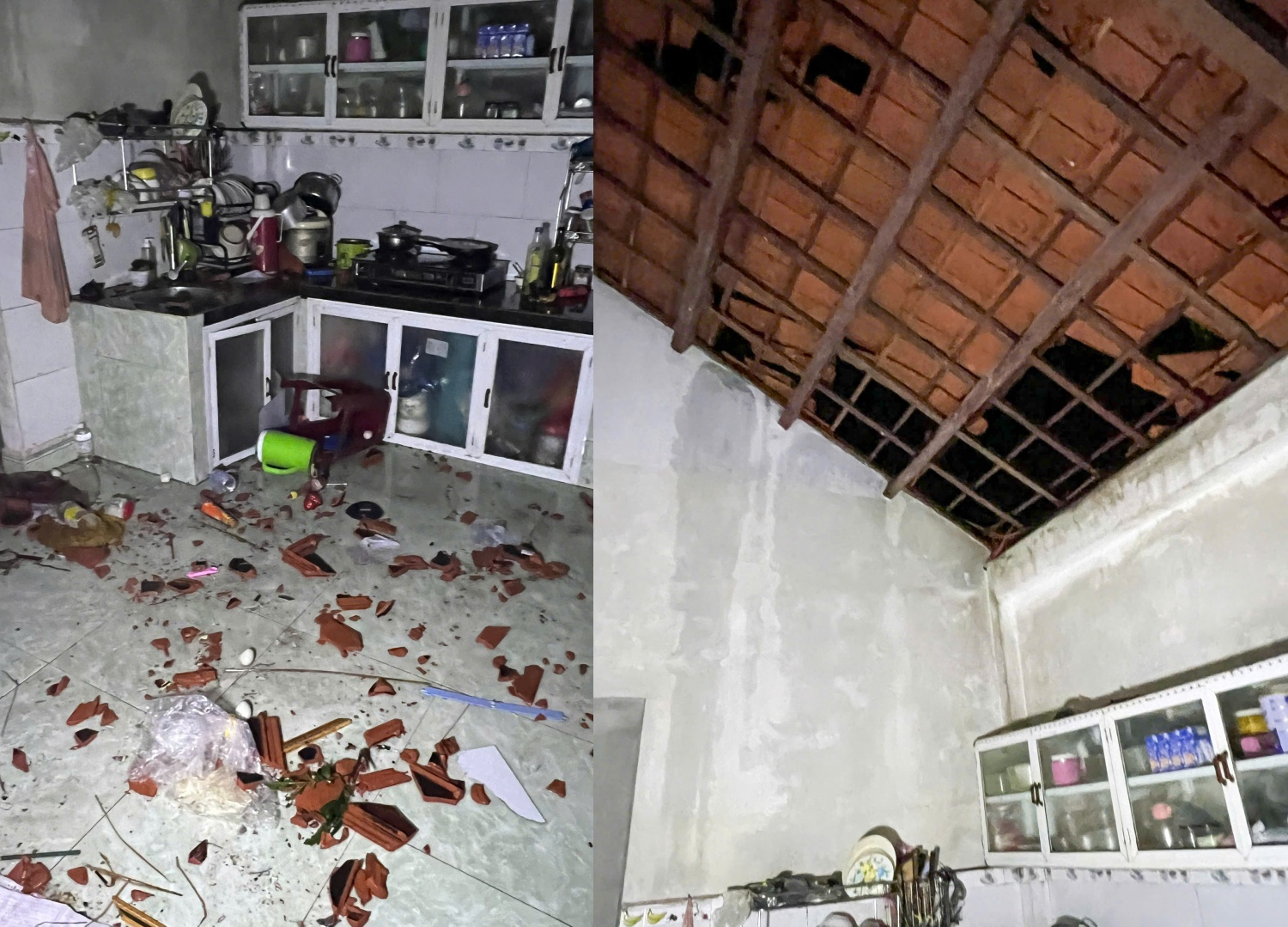 Lốc xoáy khiến nhà của người dân bị tốc mai, hư hại nghiêm trọng ngay trong đêm 16/11.
