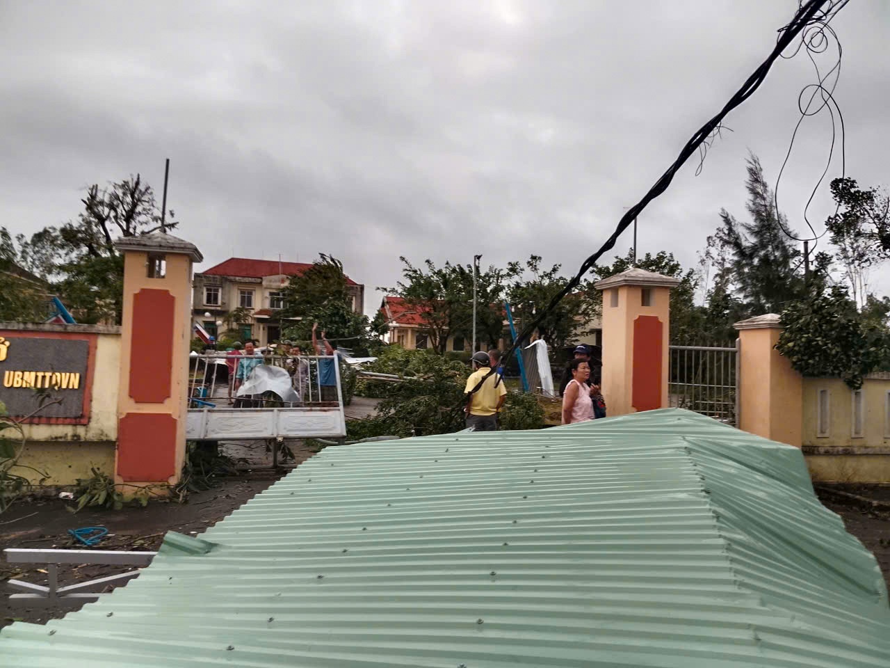 Một trụ sở hành chính bị hư hỏng mái tôn, cây gãy đổ.